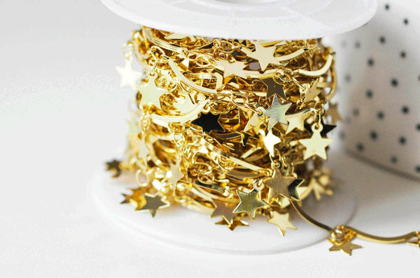 Cadena de latón bañada en oro de 18 quilates con estrellas, cadena de oro de fantasía de 16 mm, x1 metro (G4169)