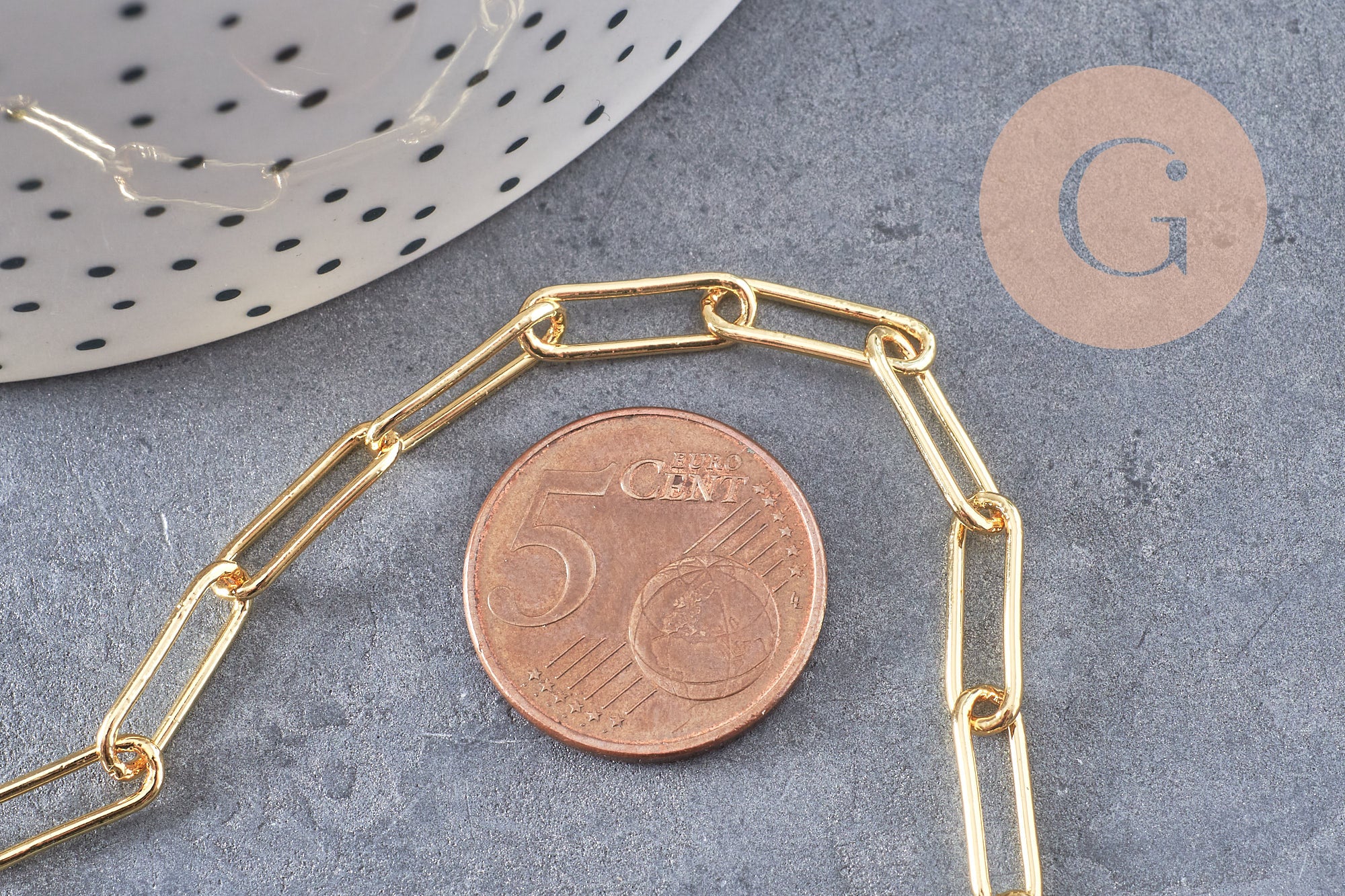 Para realizar rápidamente tus joyas, Gingerily te ofrece esta cadena rectangular dorada en latón bañado en oro de 18k.