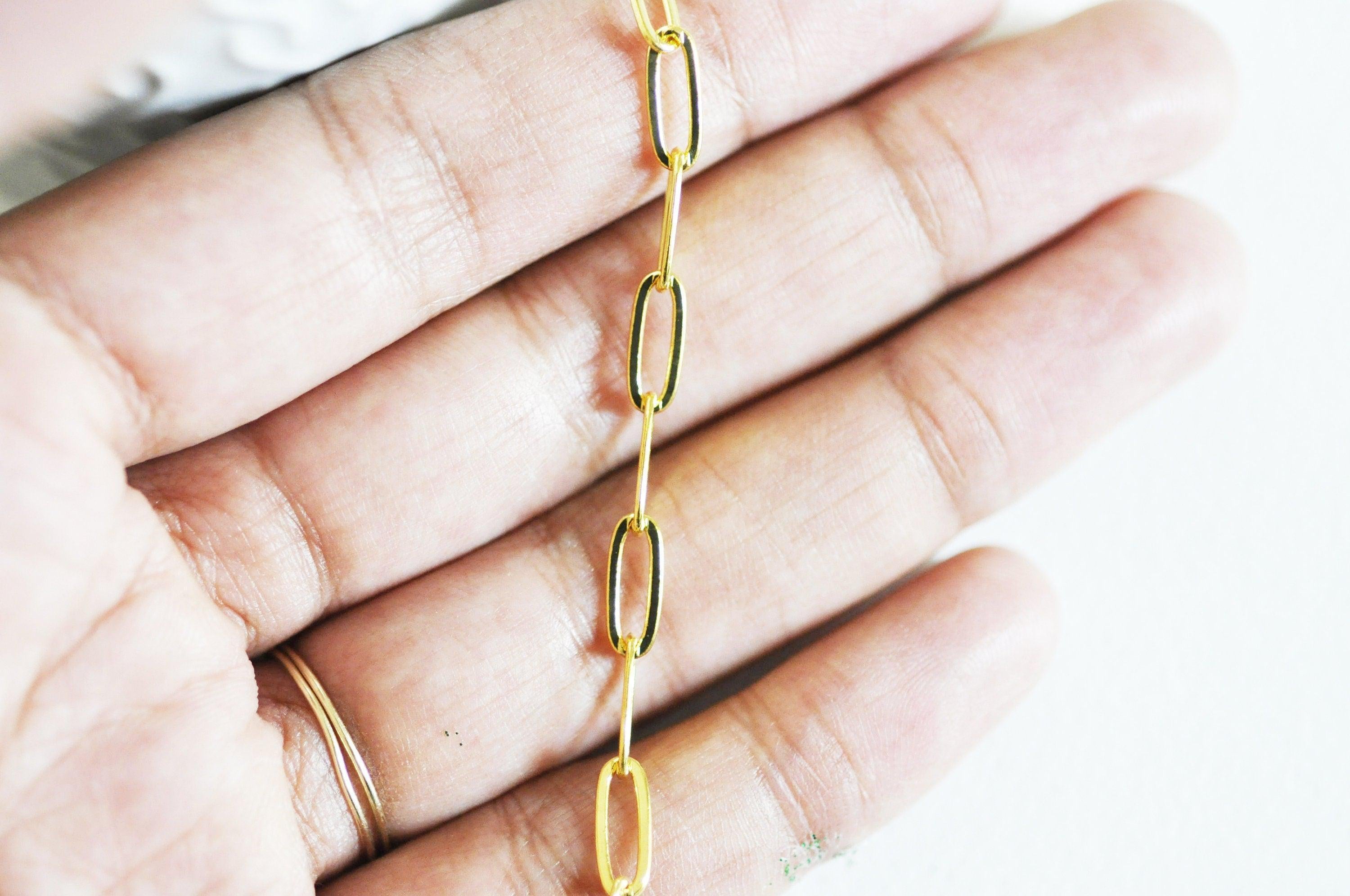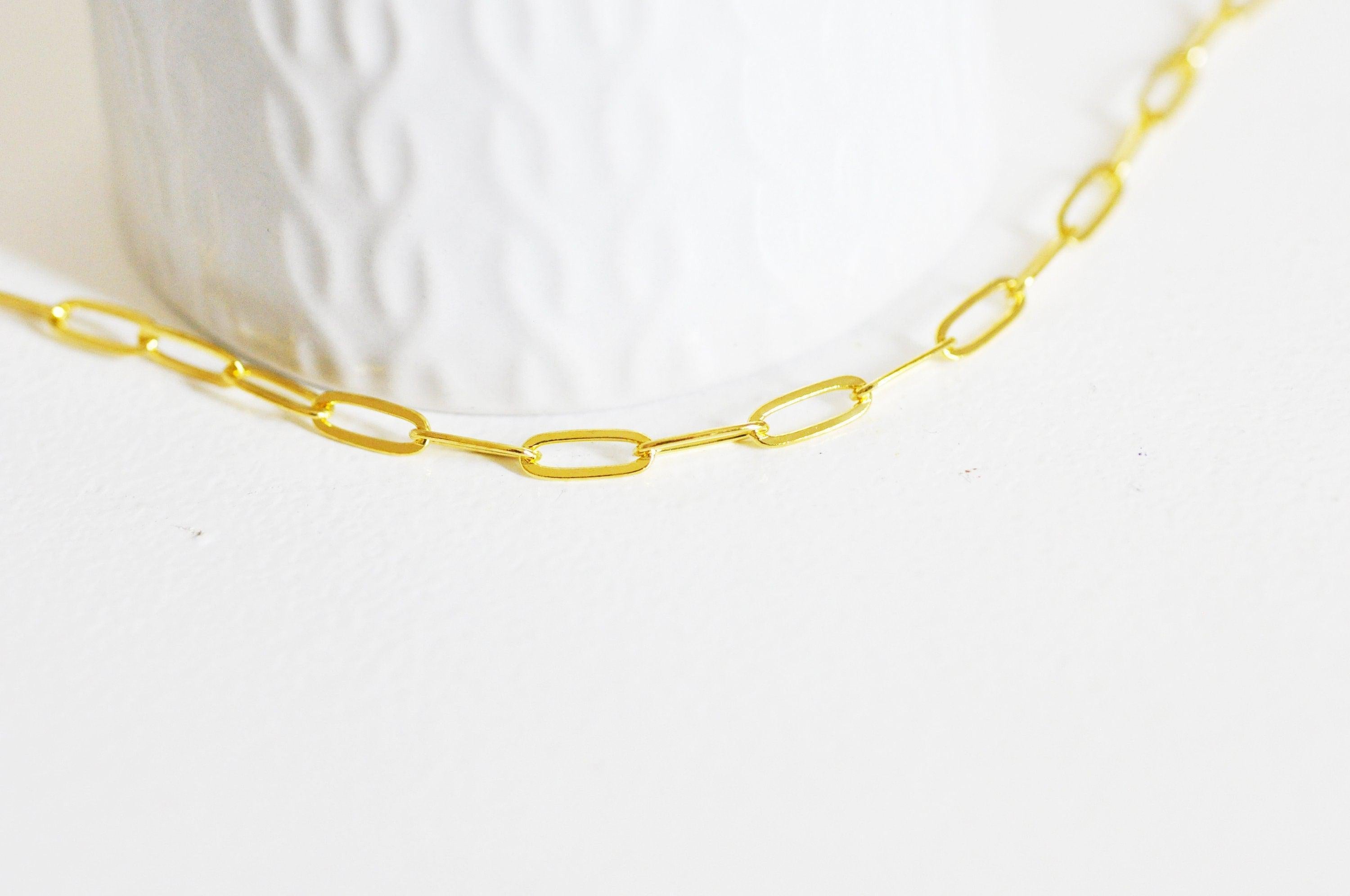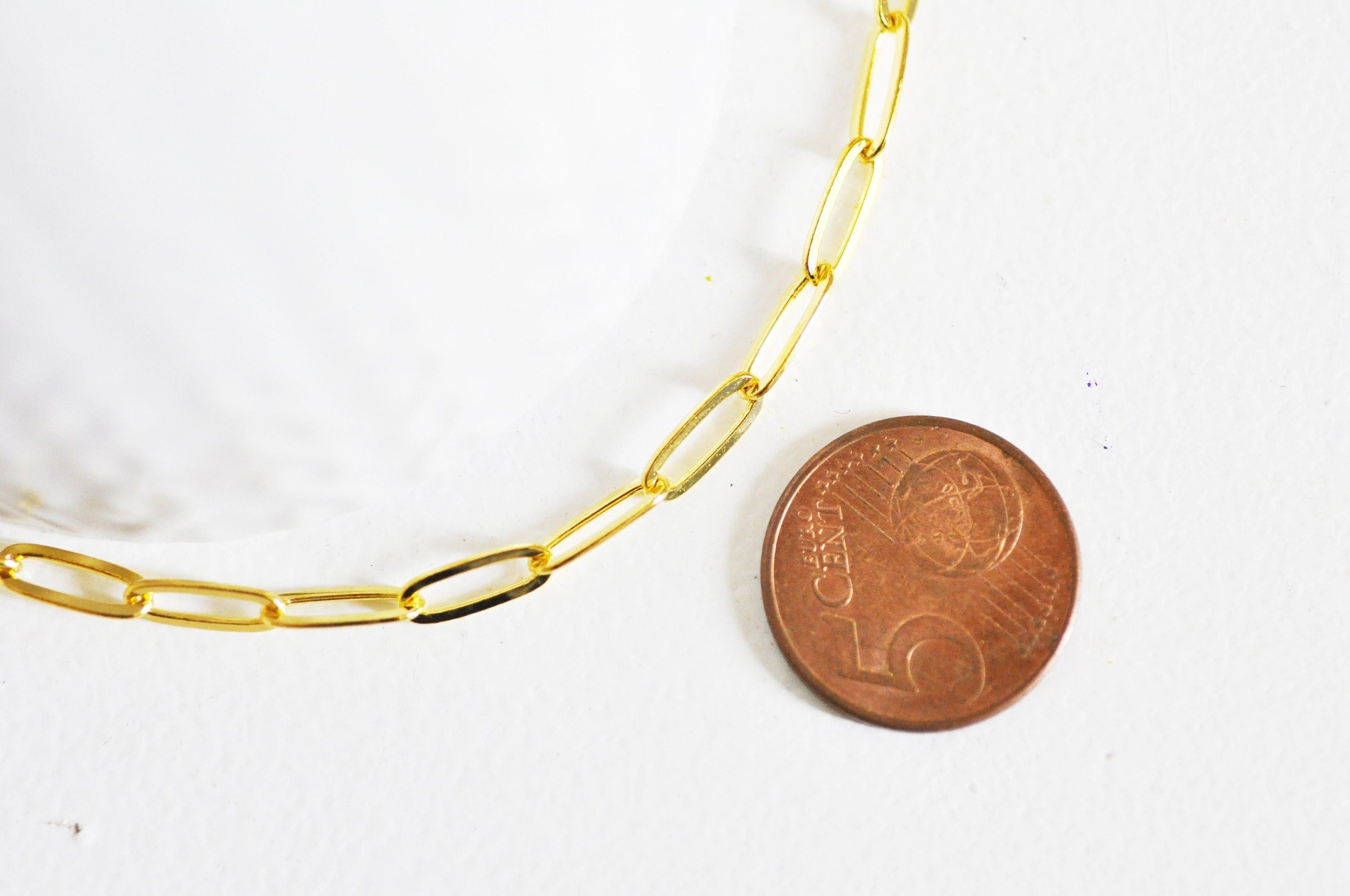 Para realizar rápidamente tus joyas, Gingerily te ofrece esta cadena rectangular dorada en latón bañado en oro.