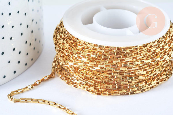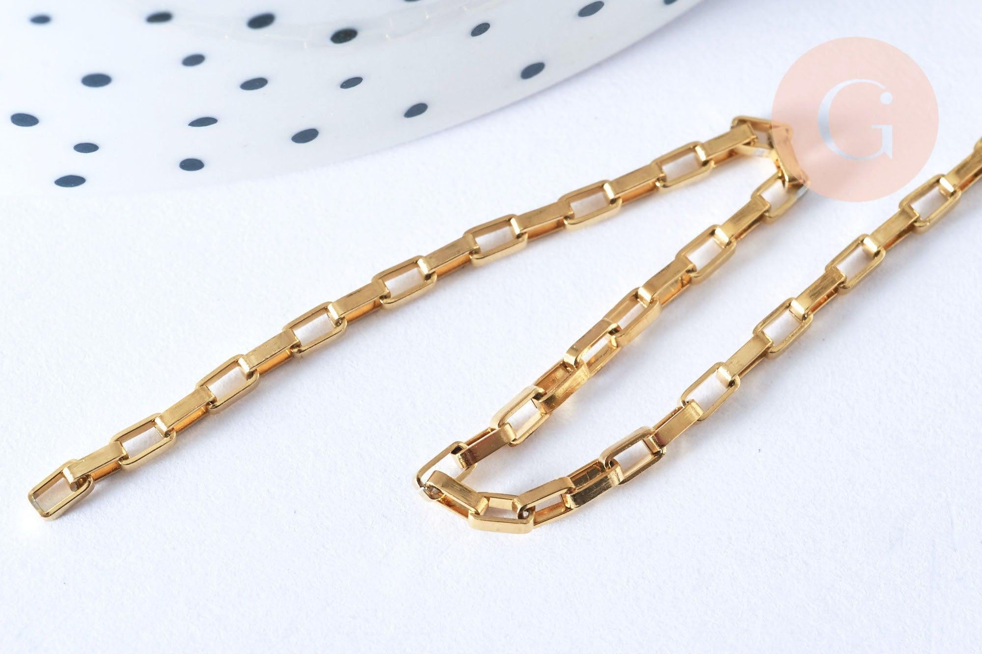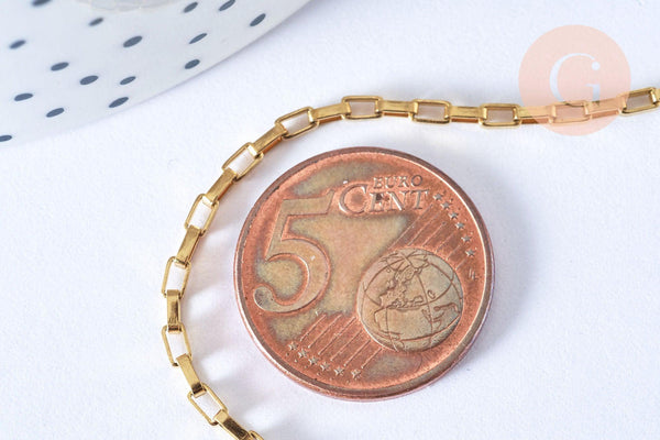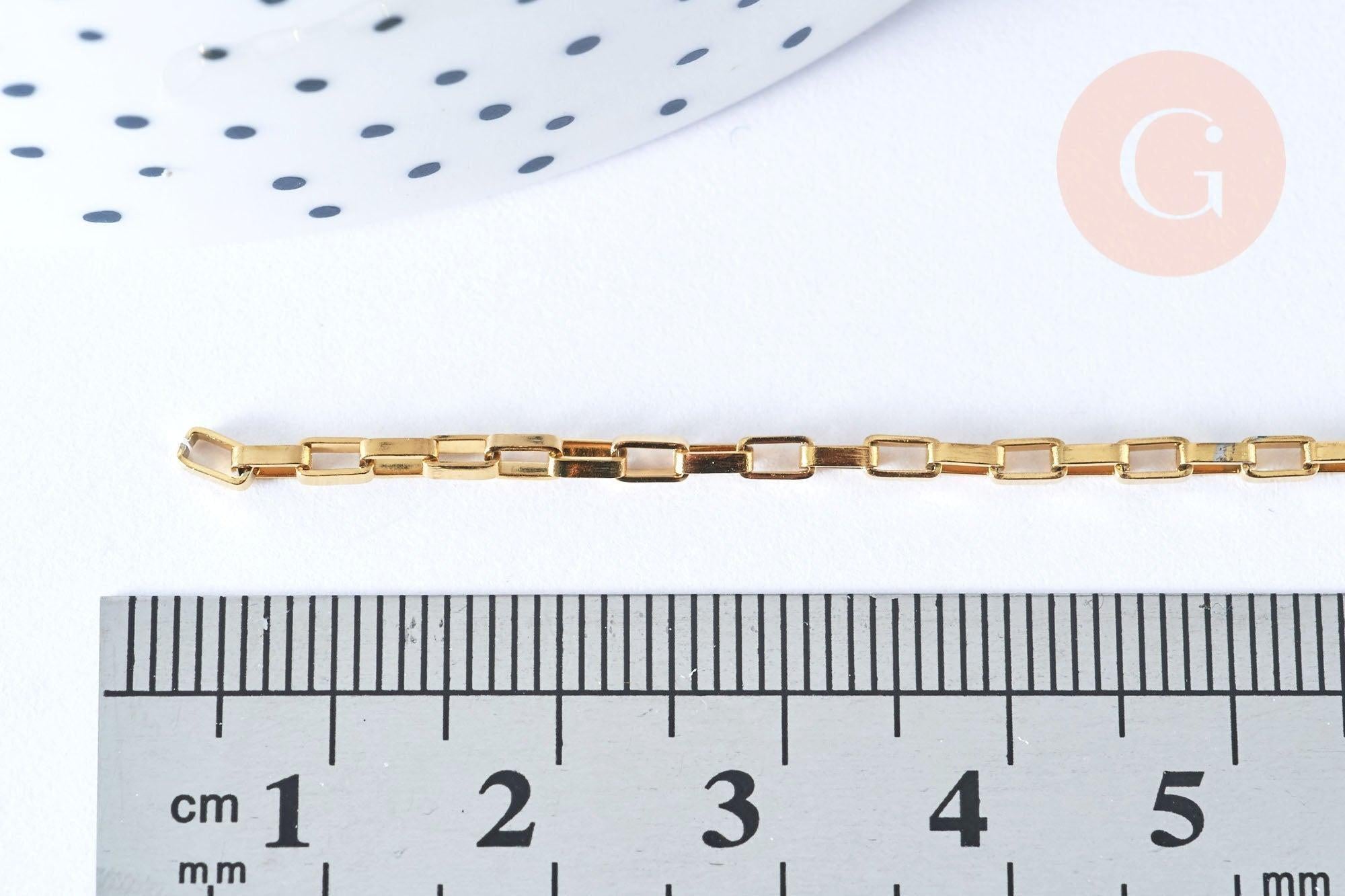 Cadena de malla rectangular de acero inoxidable IP 304 oro de 18k de 3x2 mm, x1 metro (G5345)