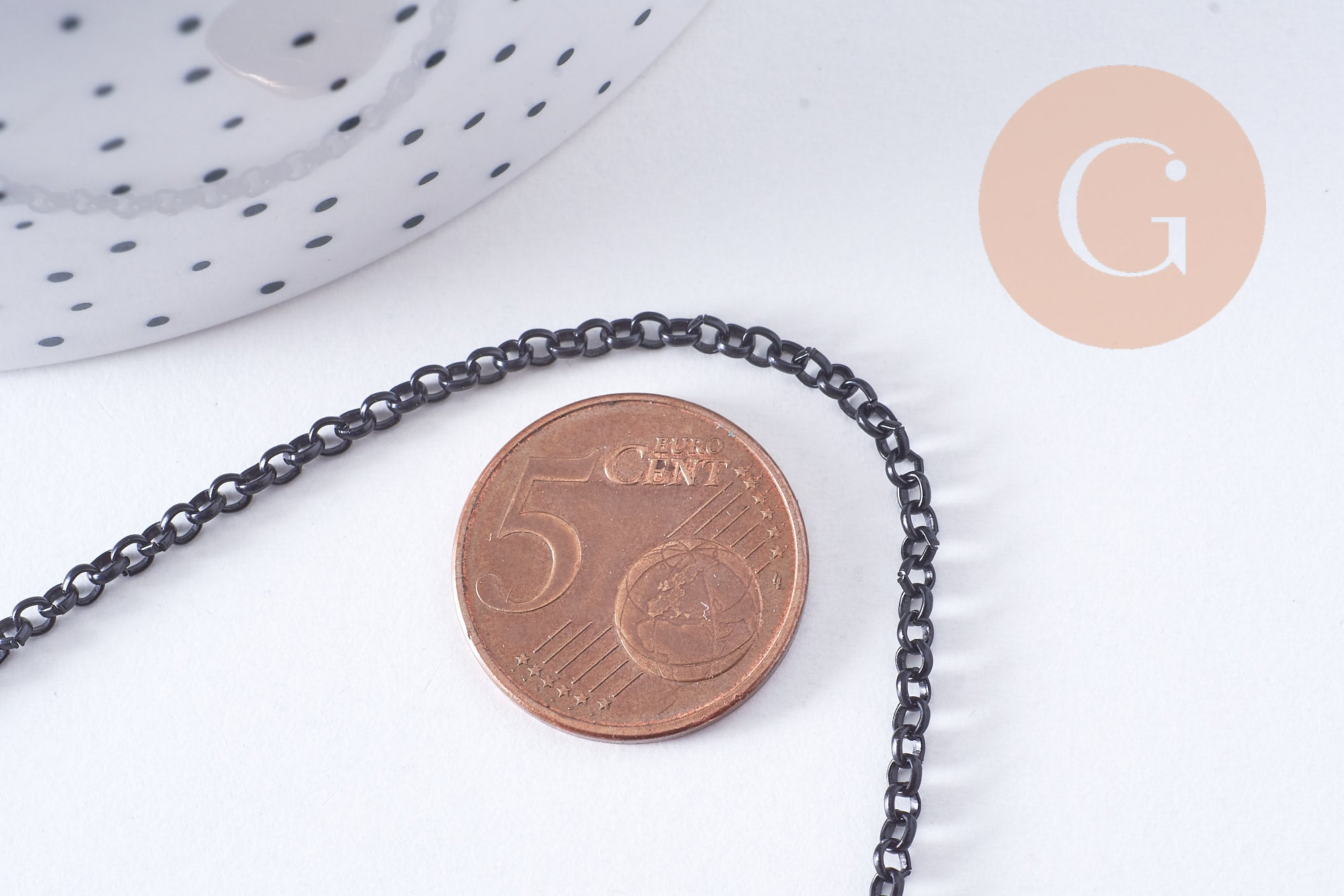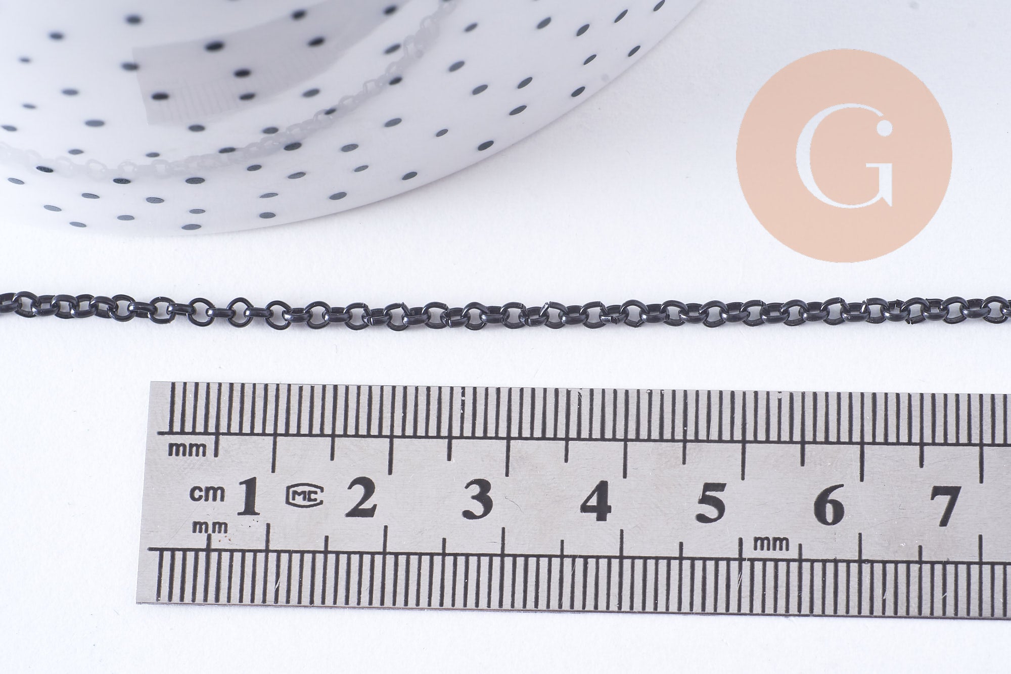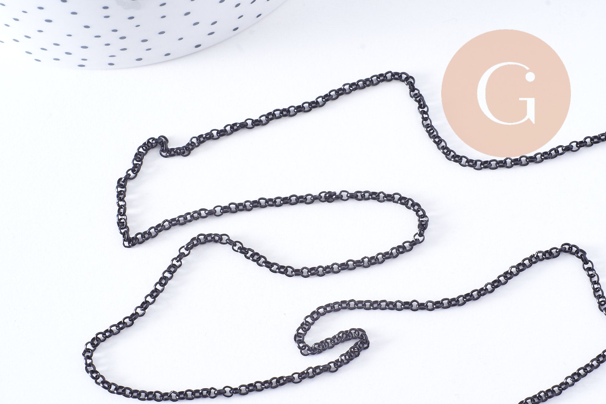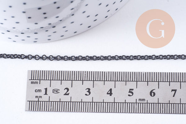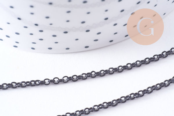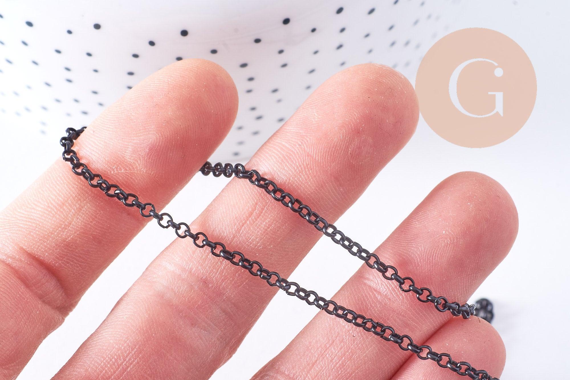 Dale un toque gráfico y moderno a tus creaciones con esta cadena de hierro negro intenso . Su malla redonda y regular le da un estilo definido, a la vez que es versátil para tus collares, pulseras o proyectos de joyería masculina.