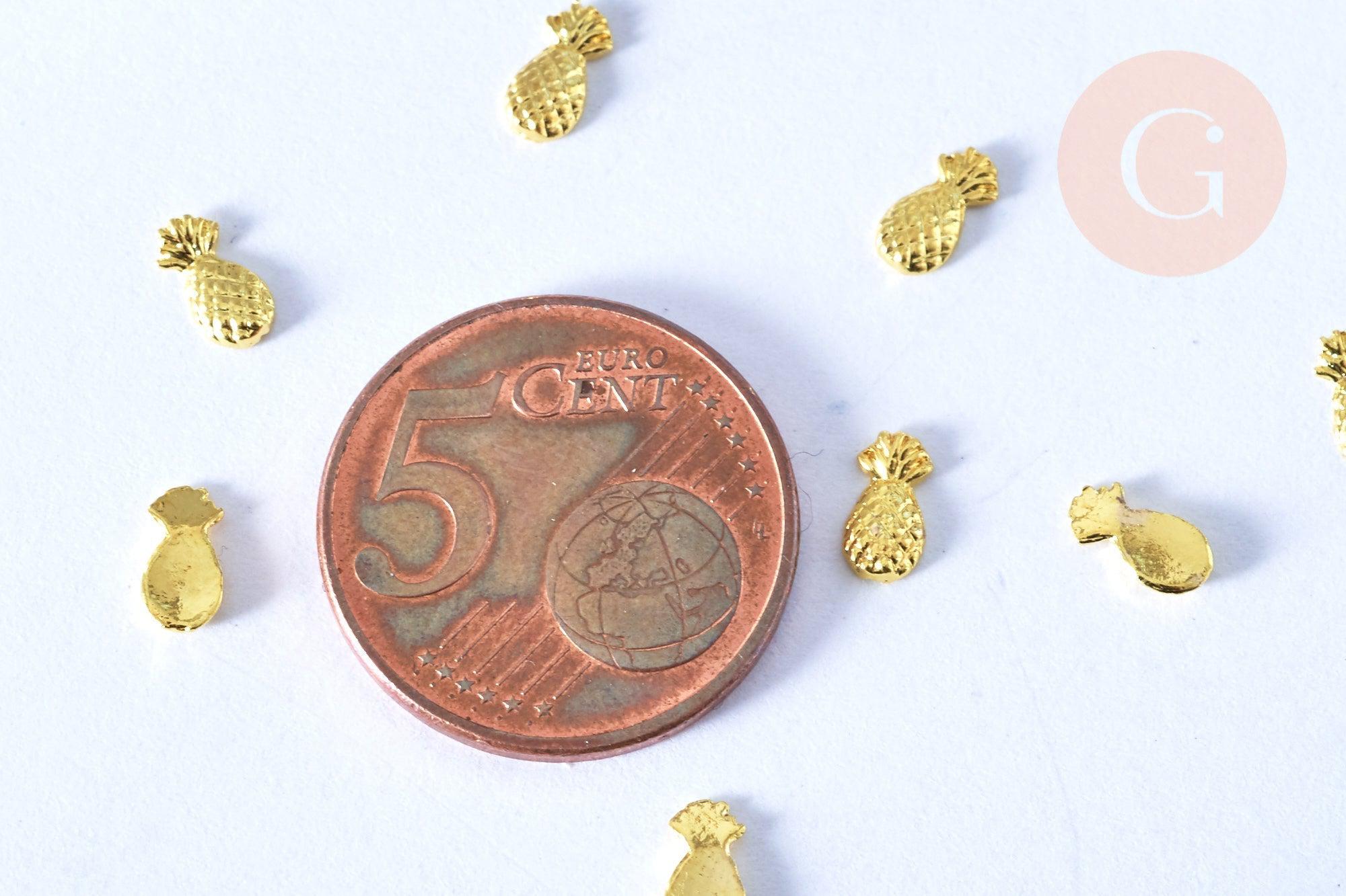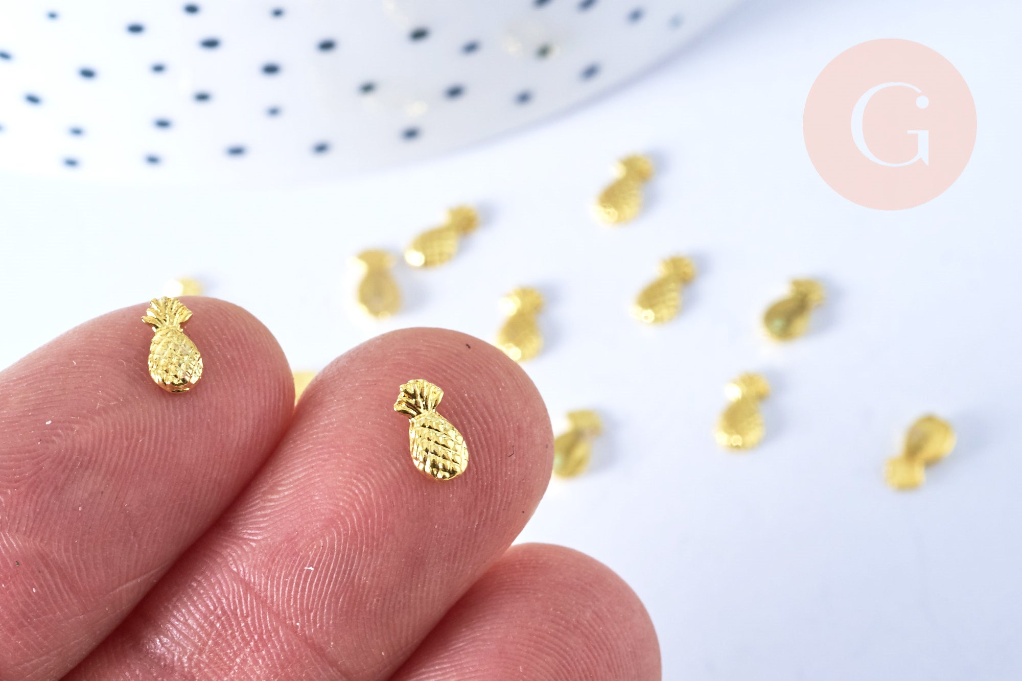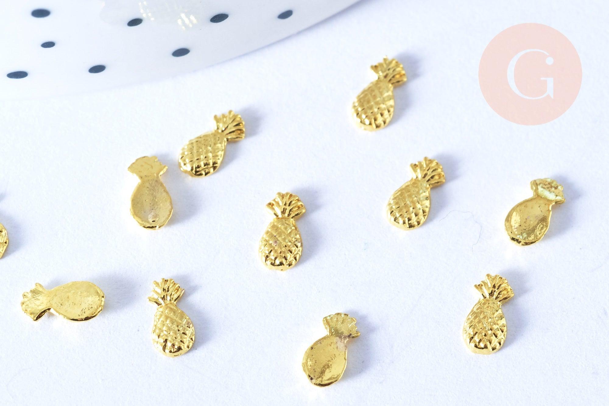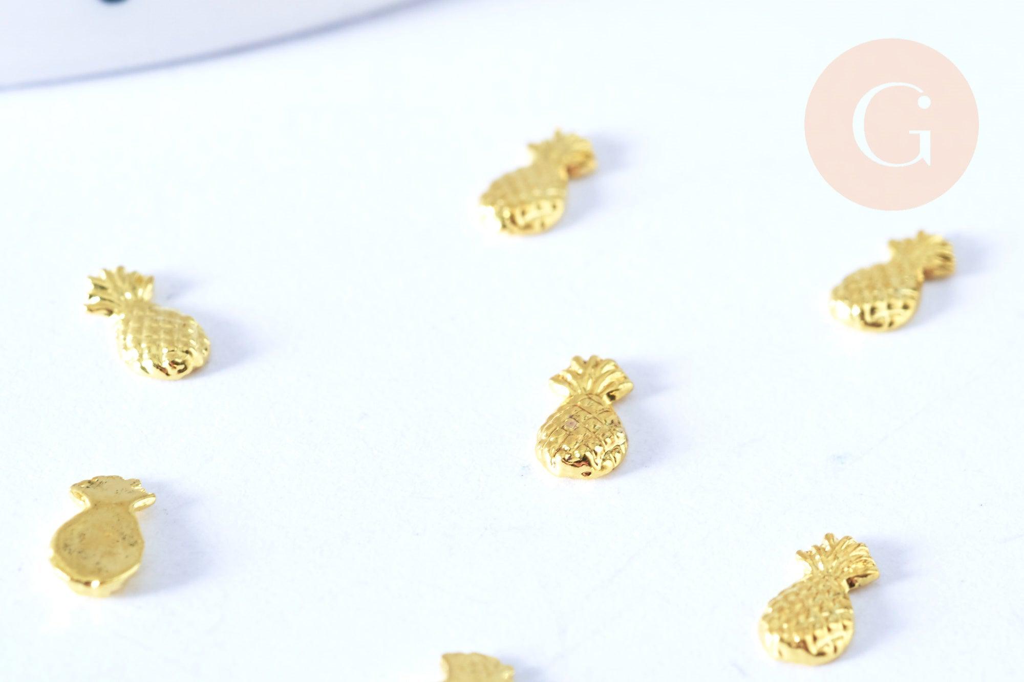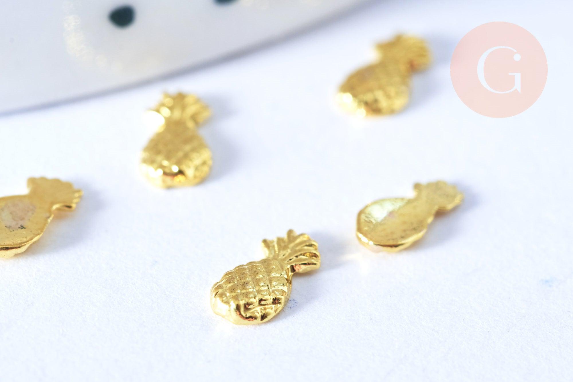 Para crear magníficos collares, aretes y pulseras personalizados con un tema tropical, playero y vacacional , adopte estos elementos de piña de zamac dorado para pegar en sus joyas y piedras.