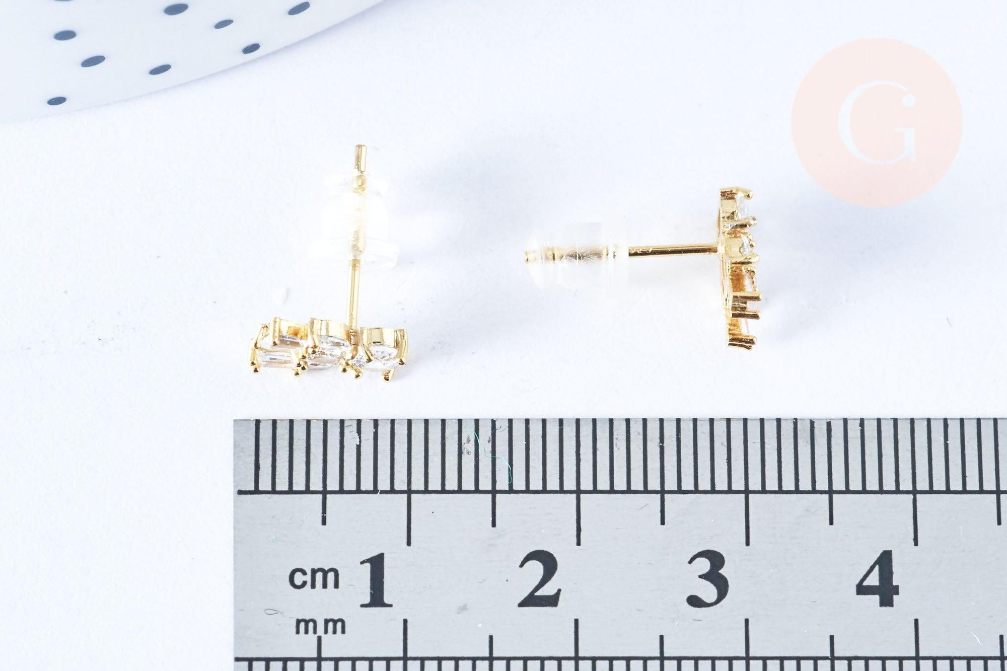 Pendientes de oso de latón con circonita blanca y cierre de presión, ideas de regalo para mujeres y niñas (par) (G7913)