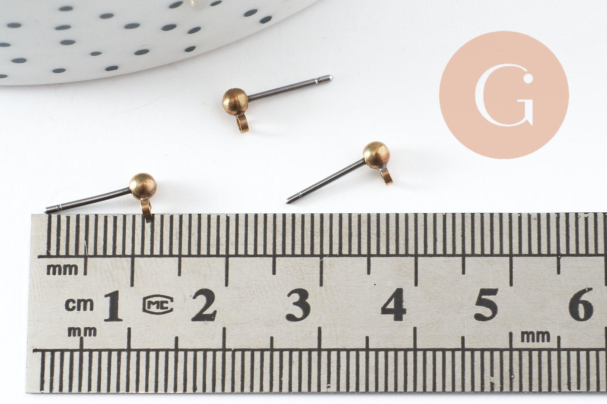 Clous-puces boule boucles oreille laiton brut acier acier inoxydable 4mm,x10 (G1269)