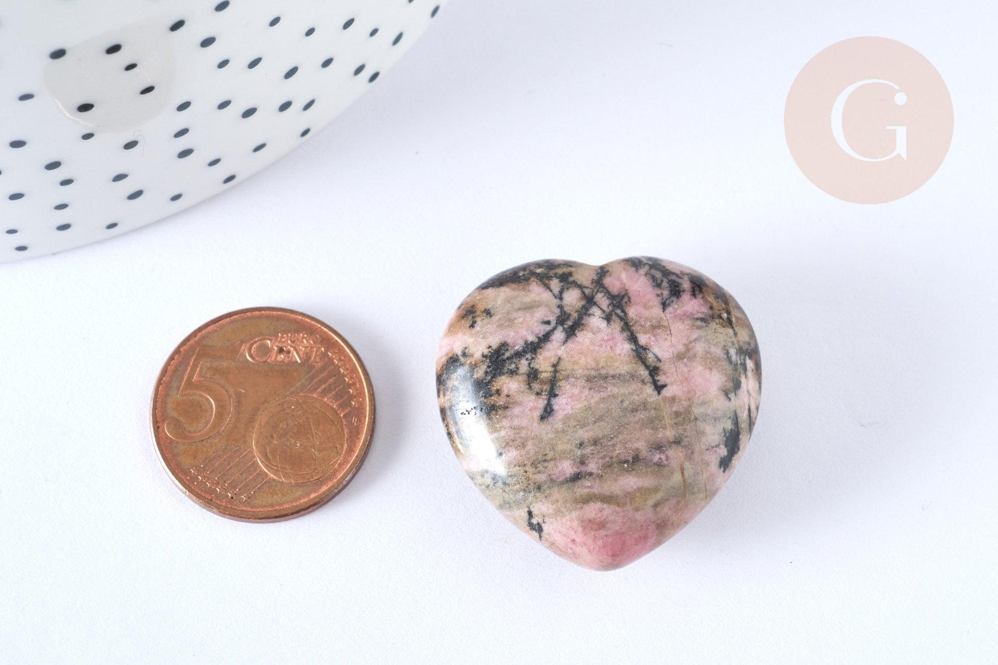¡Déjate seducir por este corazoncito de Rodonita natural para llevar en un collar o en un collar en forma de rosario!