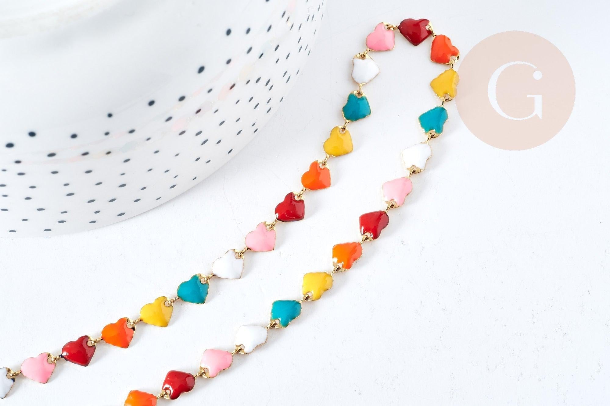 Collier chaine coeur acier doré 304 inoxydable émaillé multicolore 45mm, idée cadeau anniversaire fête des mères femme x1 G8622