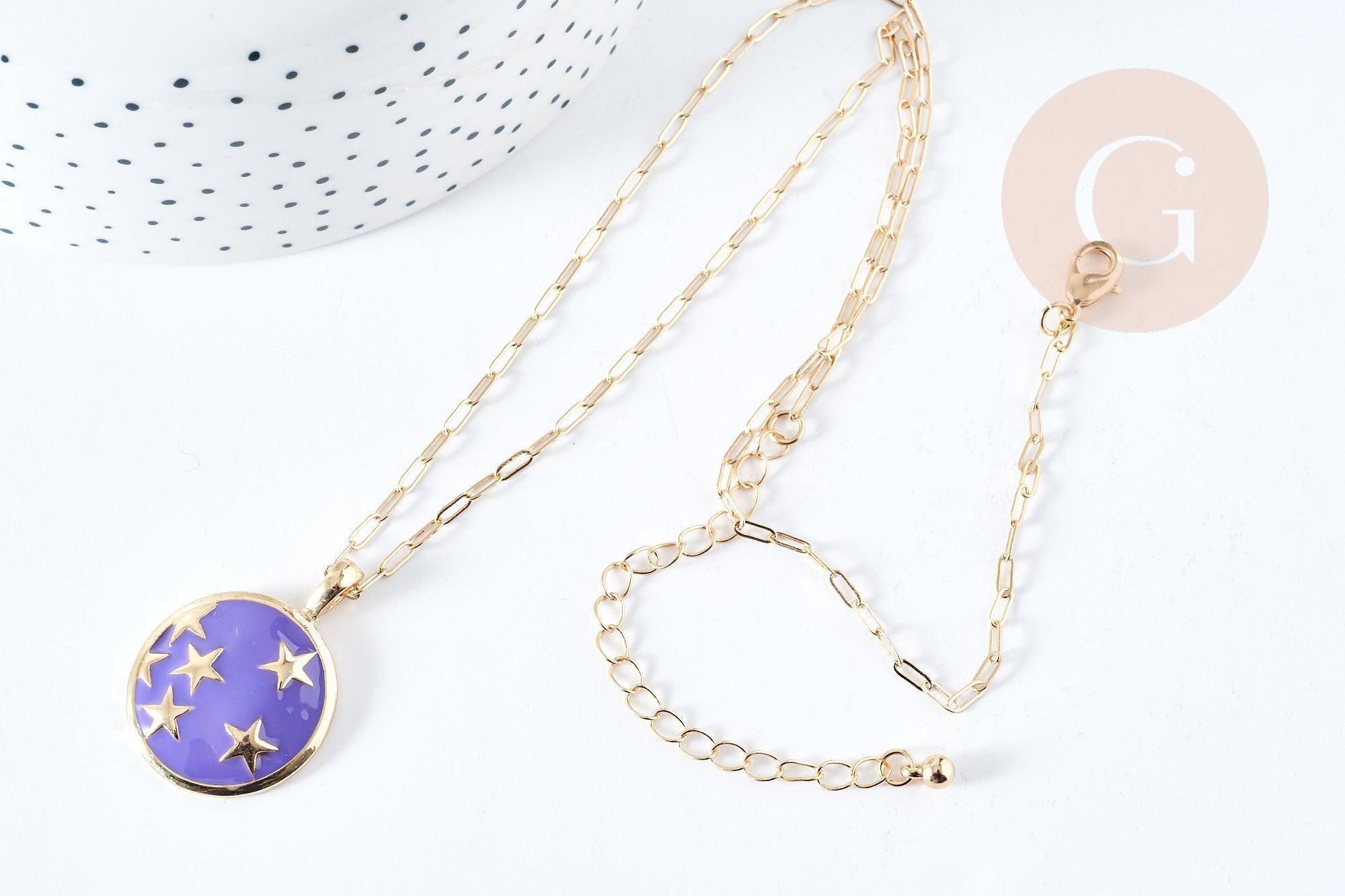 Collar de medalla de estrella esmaltada en oro 304 acero inoxidable esmaltado 45-50 mm, idea de regalo de cumpleaños para el Día de la Madre para mujeres, x1 G7647