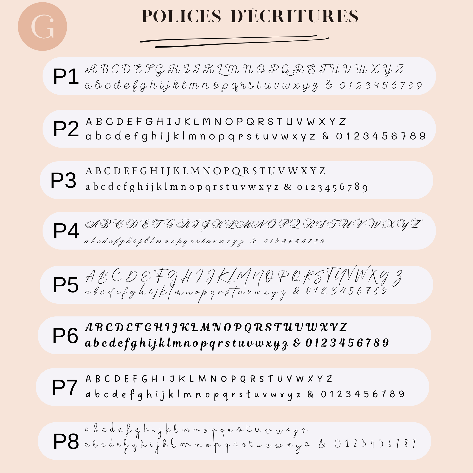 *Grabado con una fuente delicada y creativa hecha con amor en nuestro taller.