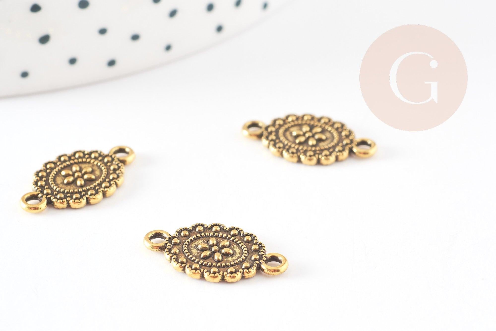 Conector medalla flor zamac oro viejo, conector para creación colgante romántico, creación joyería, 18mm, x10 G4525