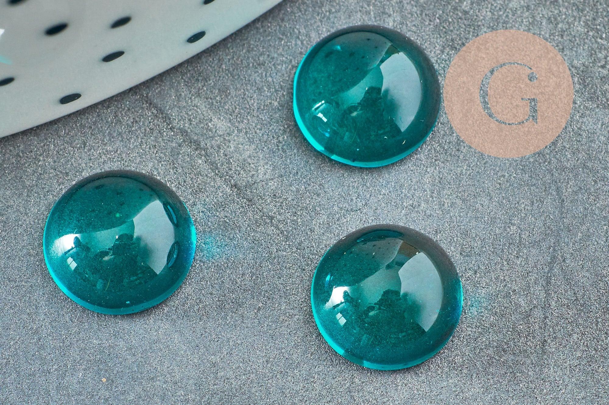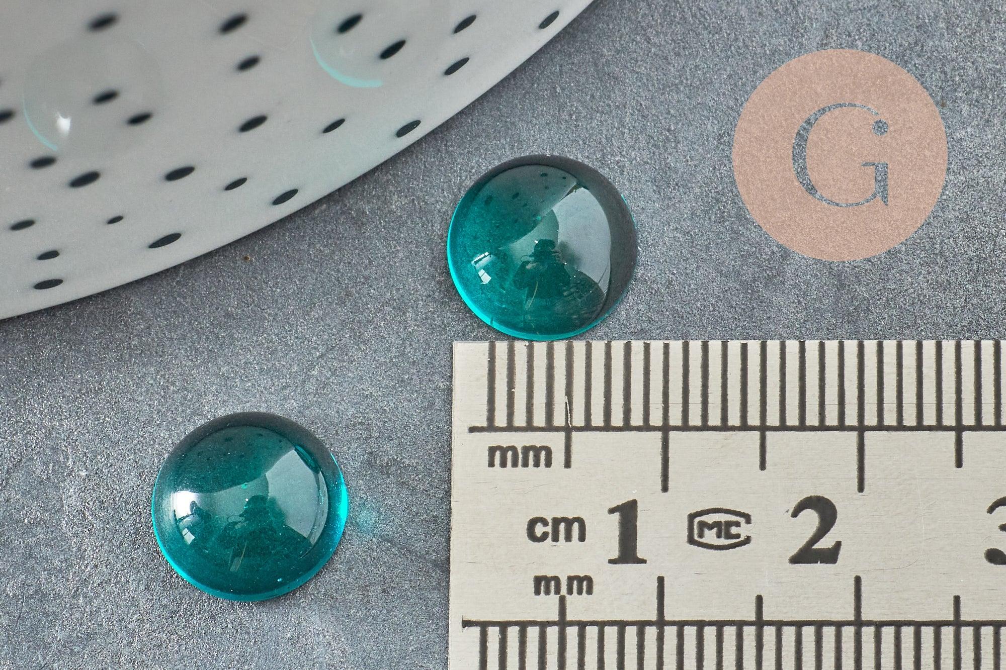 Déjate seducir por este cabujón de cristal en forma de gota, liso y luminoso, de color verde turquesa intenso.