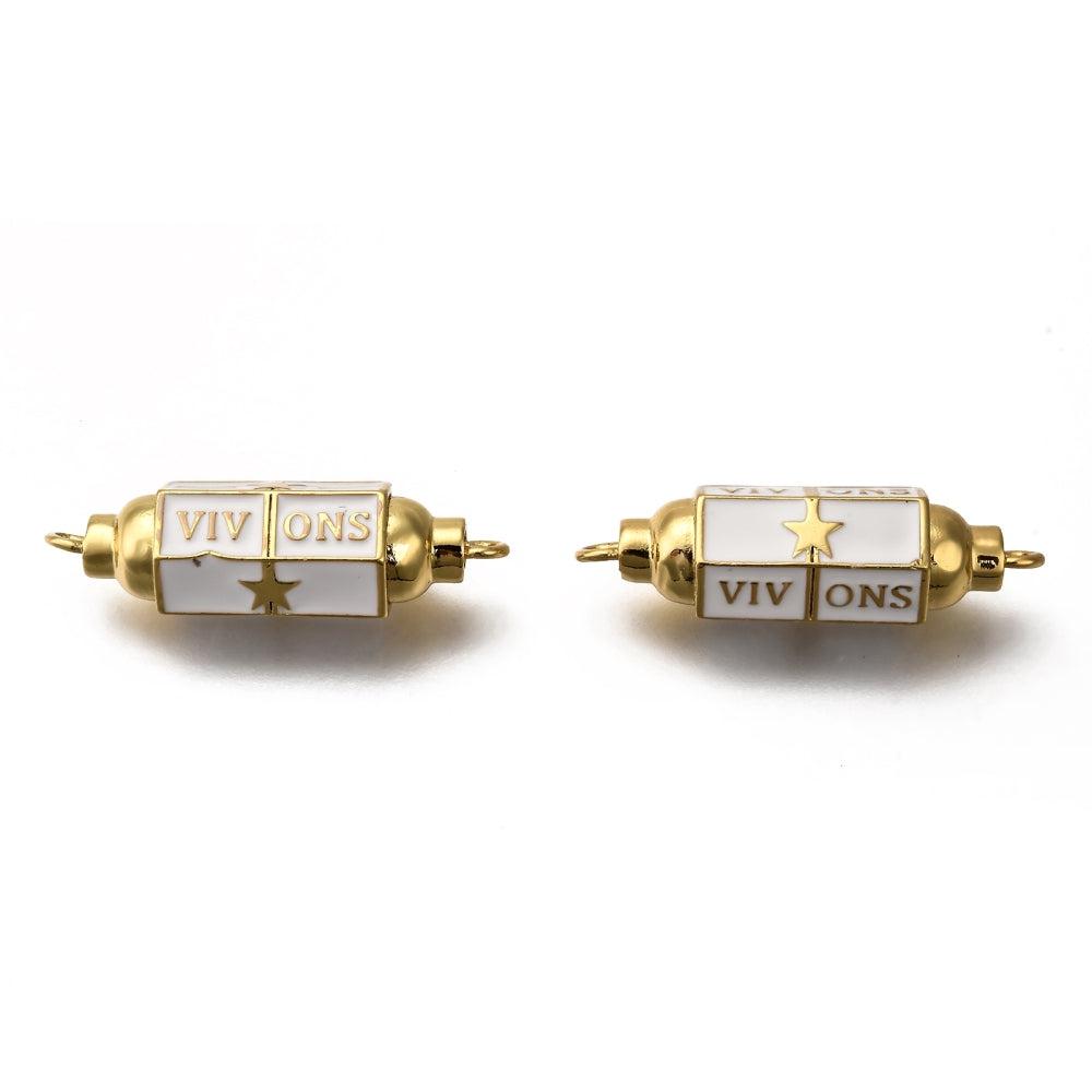 Para sus pulseras y collares talismán de moda, aquí tiene un magnífico conector de tubo de latón bañado en oro, esmaltado en blanco y decorado con la palabra "VIVONS". Un colgante optimista que puedes adornar con una piedra, perlas en...