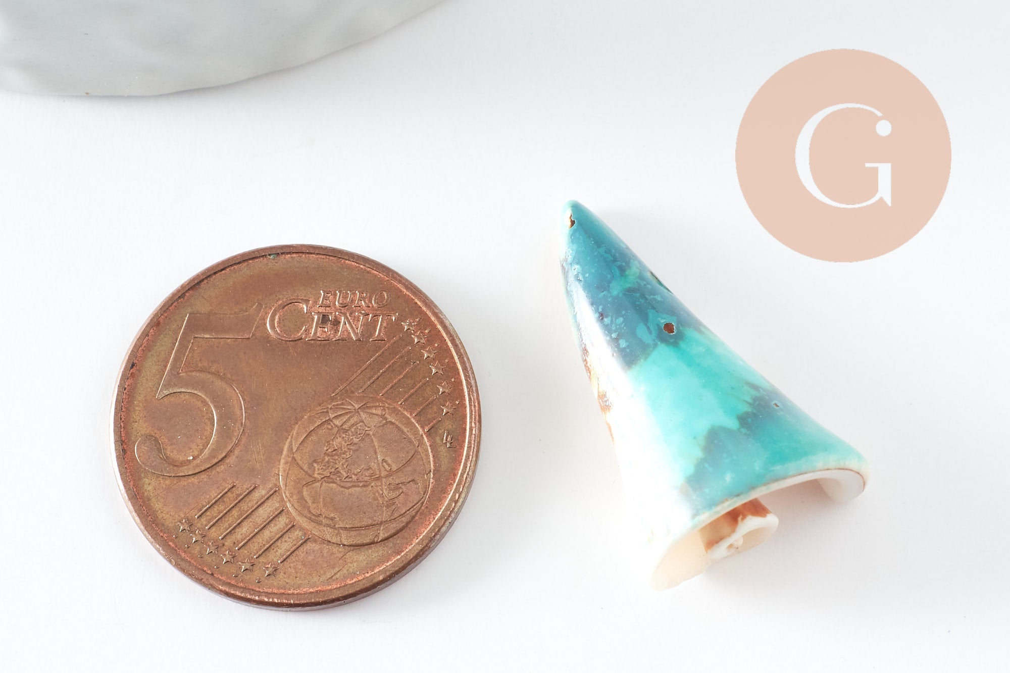 Añade un toque marino y natural a tus creaciones con esta concha natural en espiral de color azul , ya perforada para simplificar su uso.