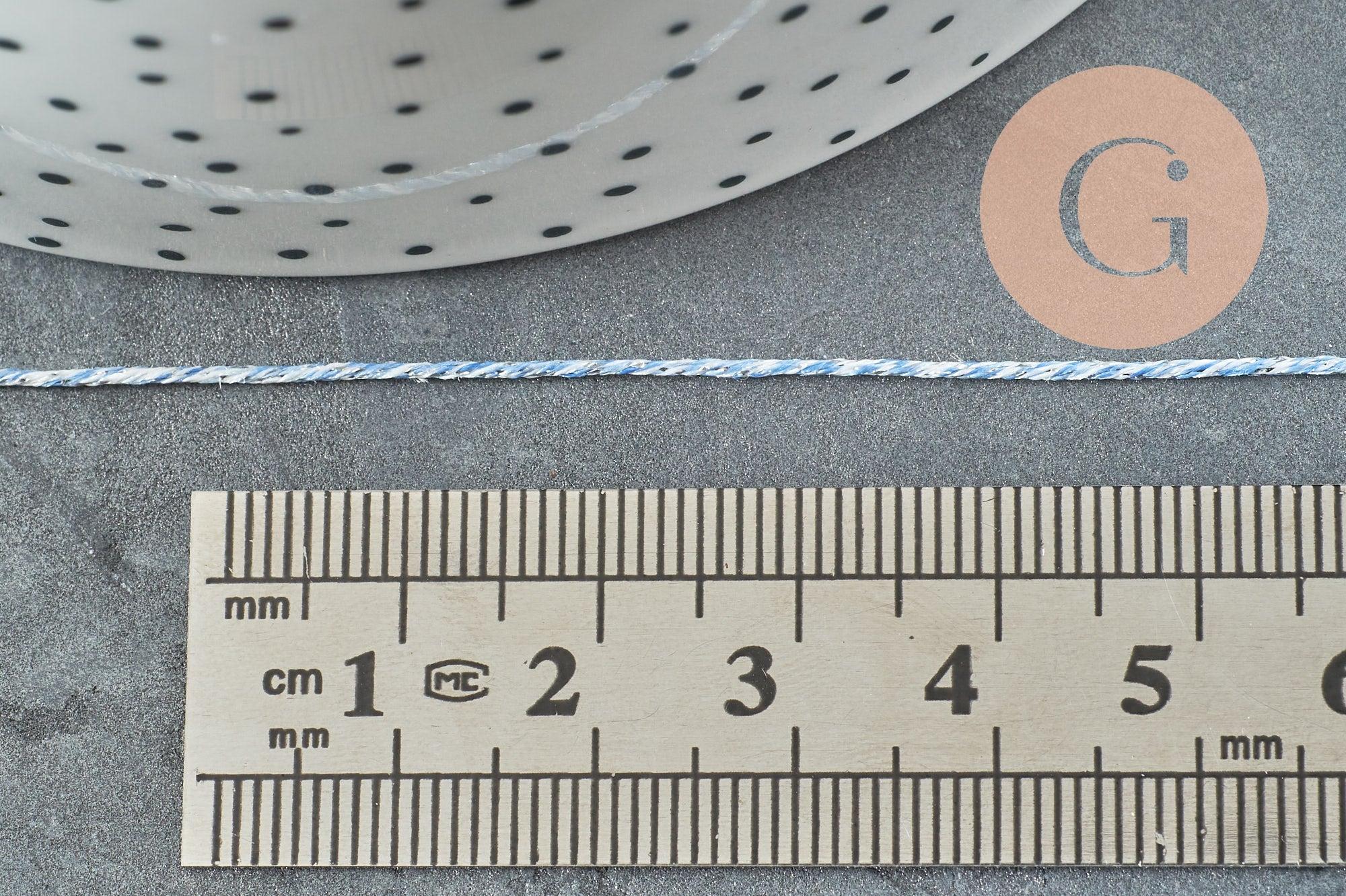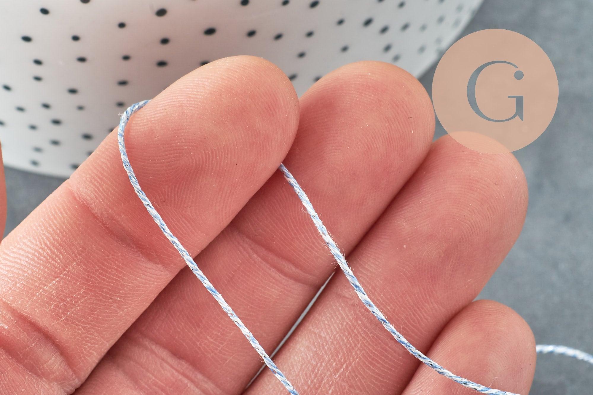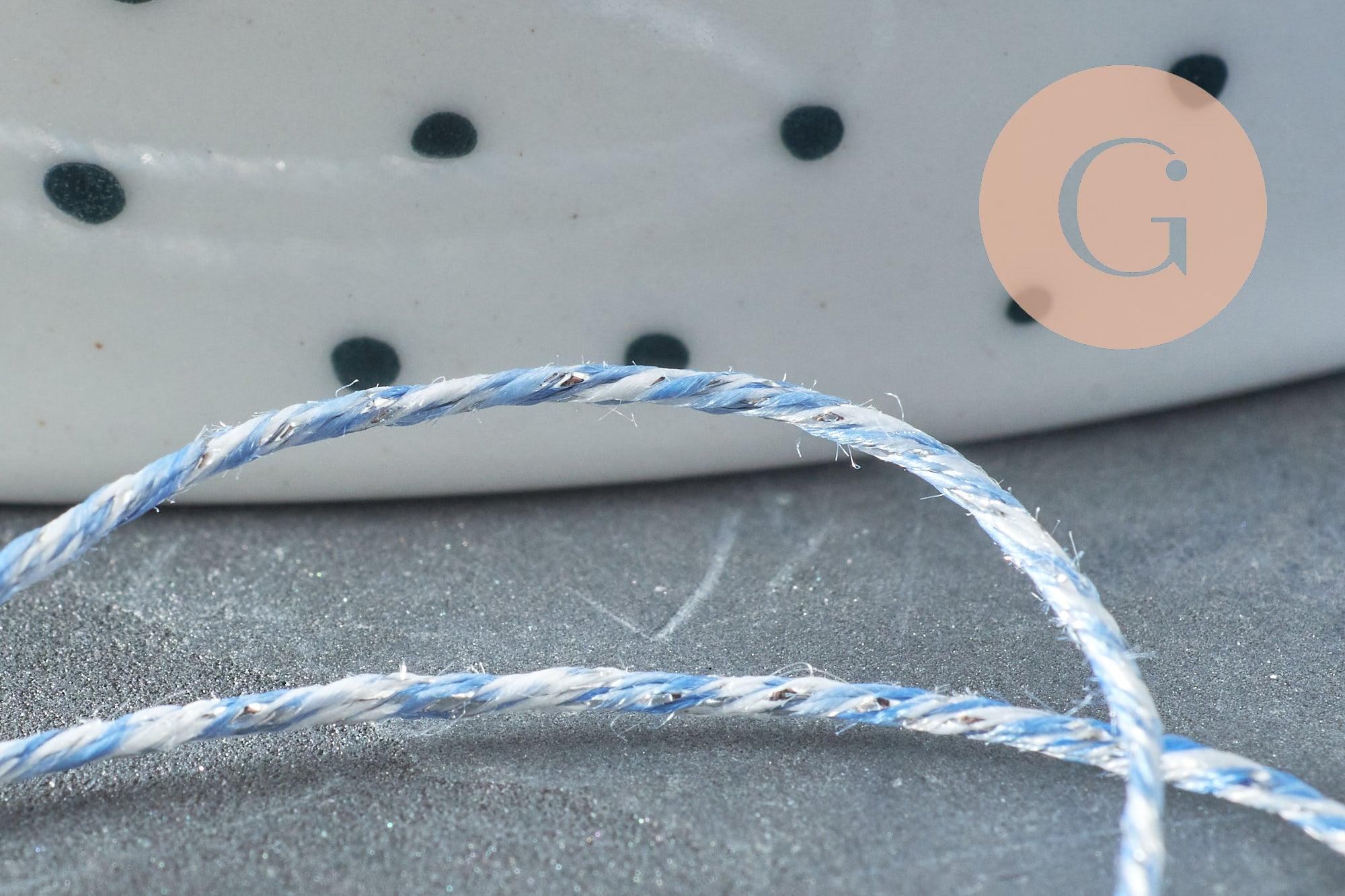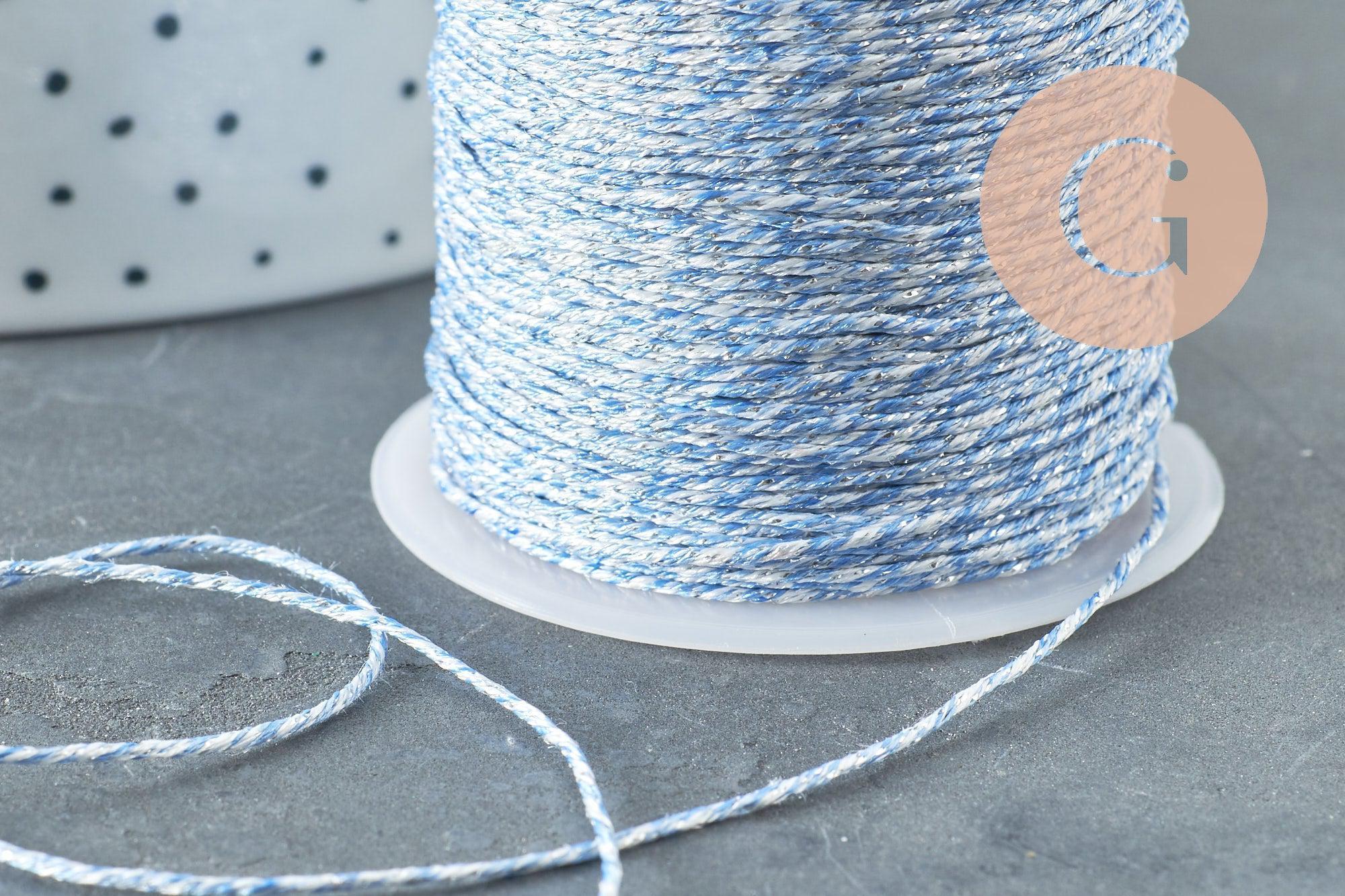 Un magnífico hilo de nailon azul, blanco y plateado, para utilizar en la confección de joyas, álbumes de recortes, creación de accesorios y bordados.