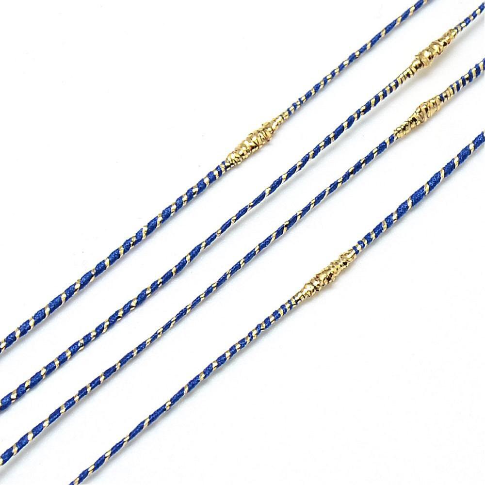 Cordón de oro azul oscuro, fabricación de joyas, creación de joyas, cinta de boda, suministro creativo, scrapbooking, ancho 1,5 mm, largo 1 metro Un hermoso hilo de nailon azul y metal dorado, que puedes usar para hacer joyas, álbumes de...