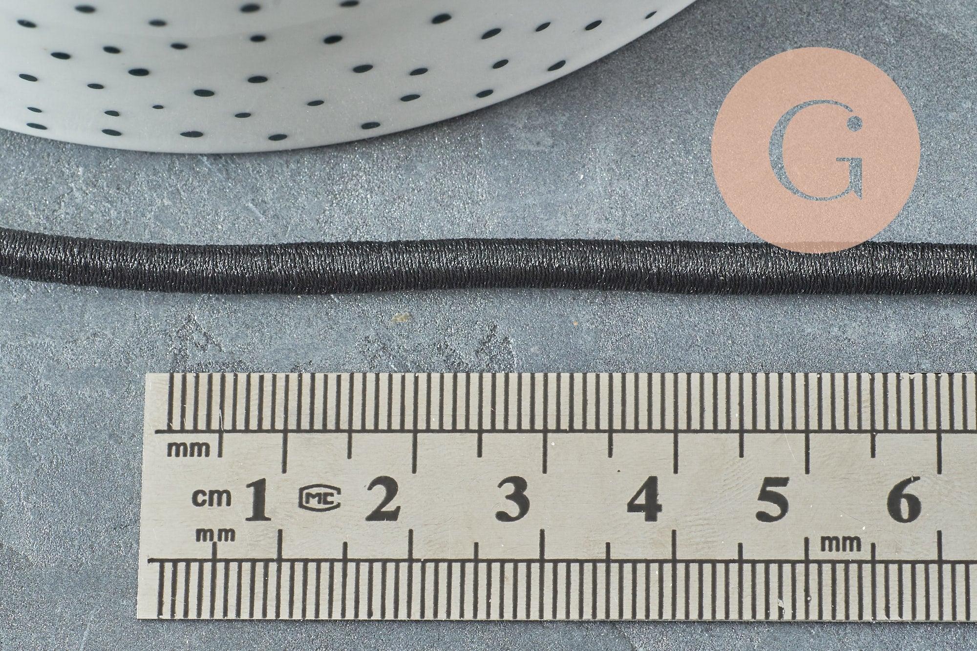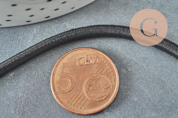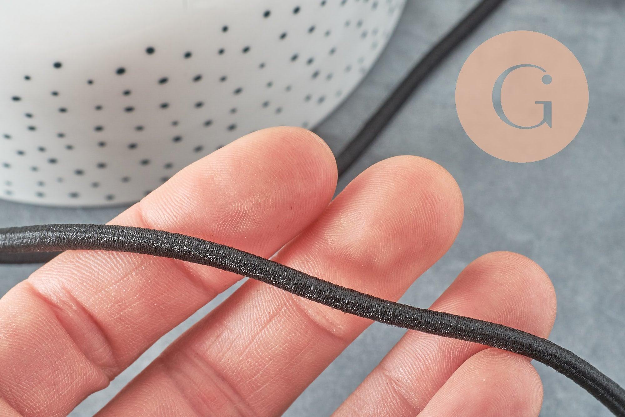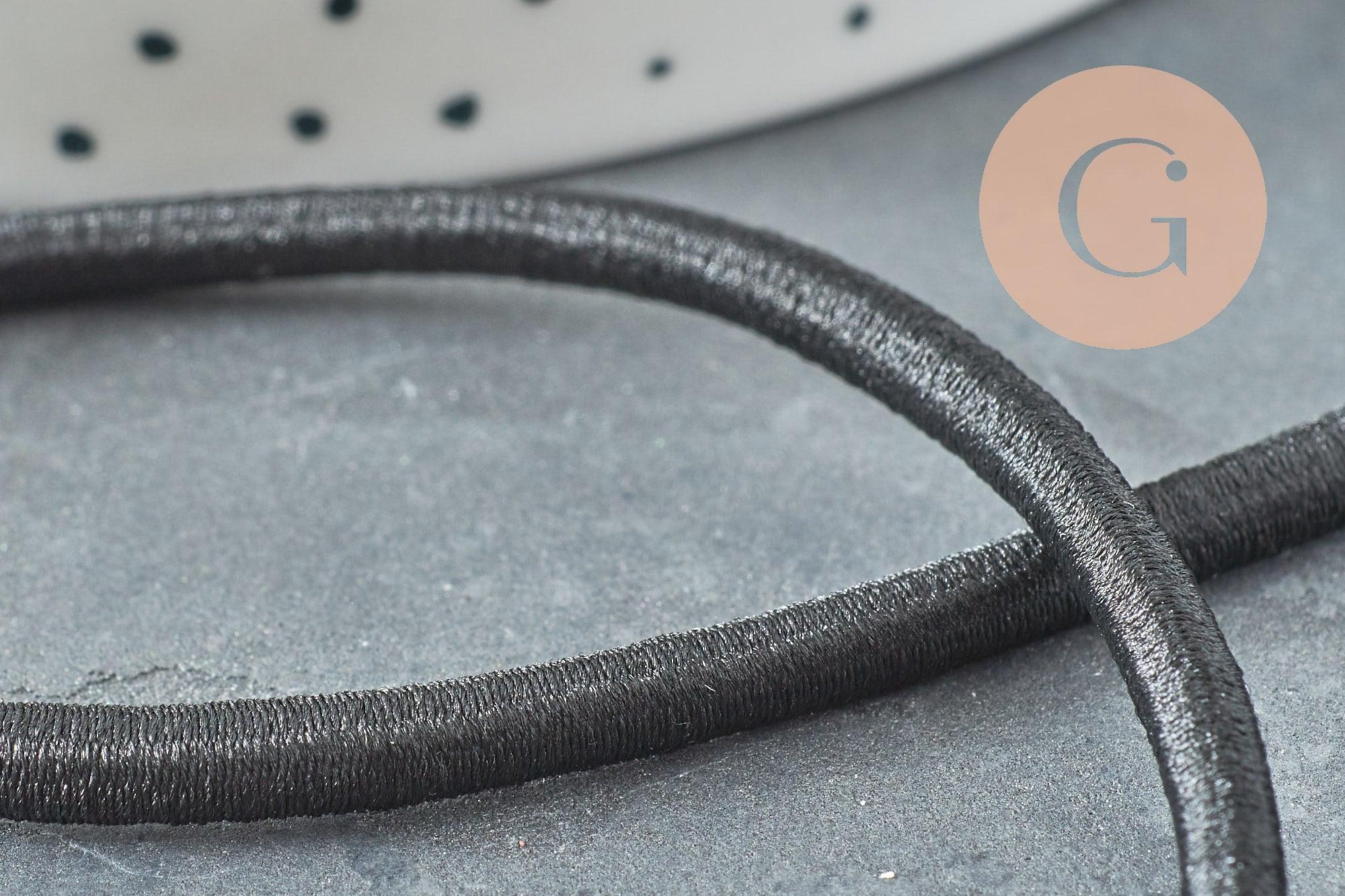 Un fuerte cordón elástico negro vendido por metros, para tus creaciones de accesorios, diademas, costura y otras actividades creativas.