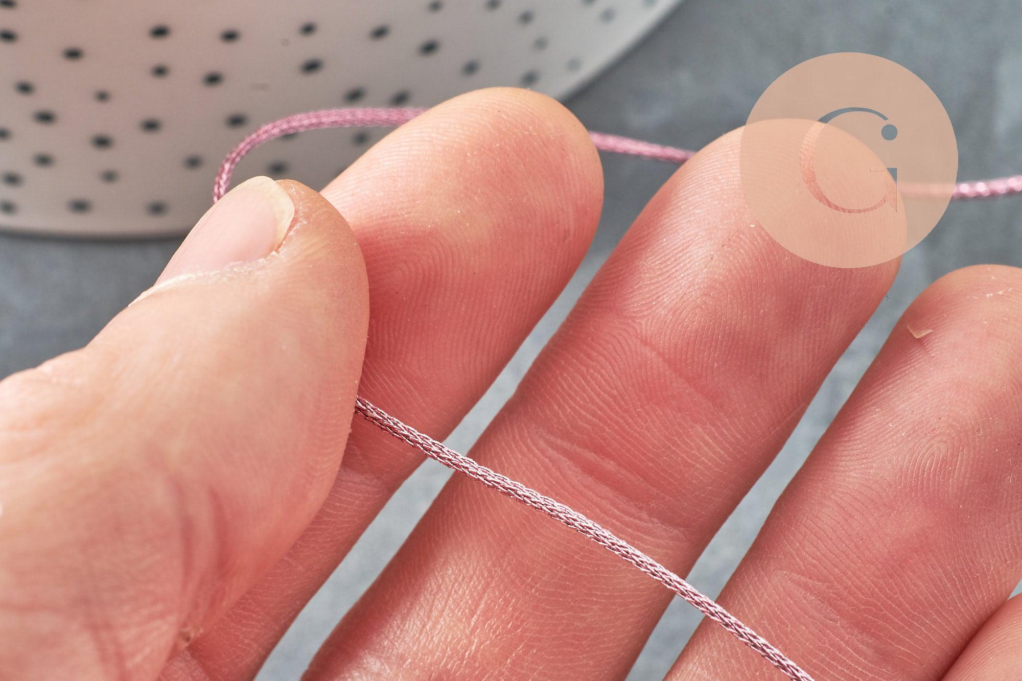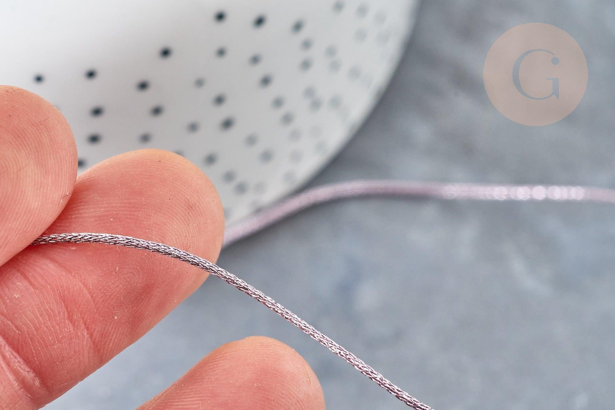 Este hilo de jade lila claro claro con acabado metálico está hecho de poliéster trenzado para una resistencia y flexibilidad óptimas. Es esencial para la fabricación de joyas y está disponible en diferentes colores y tamaños para adaptarse a tus necesidades.