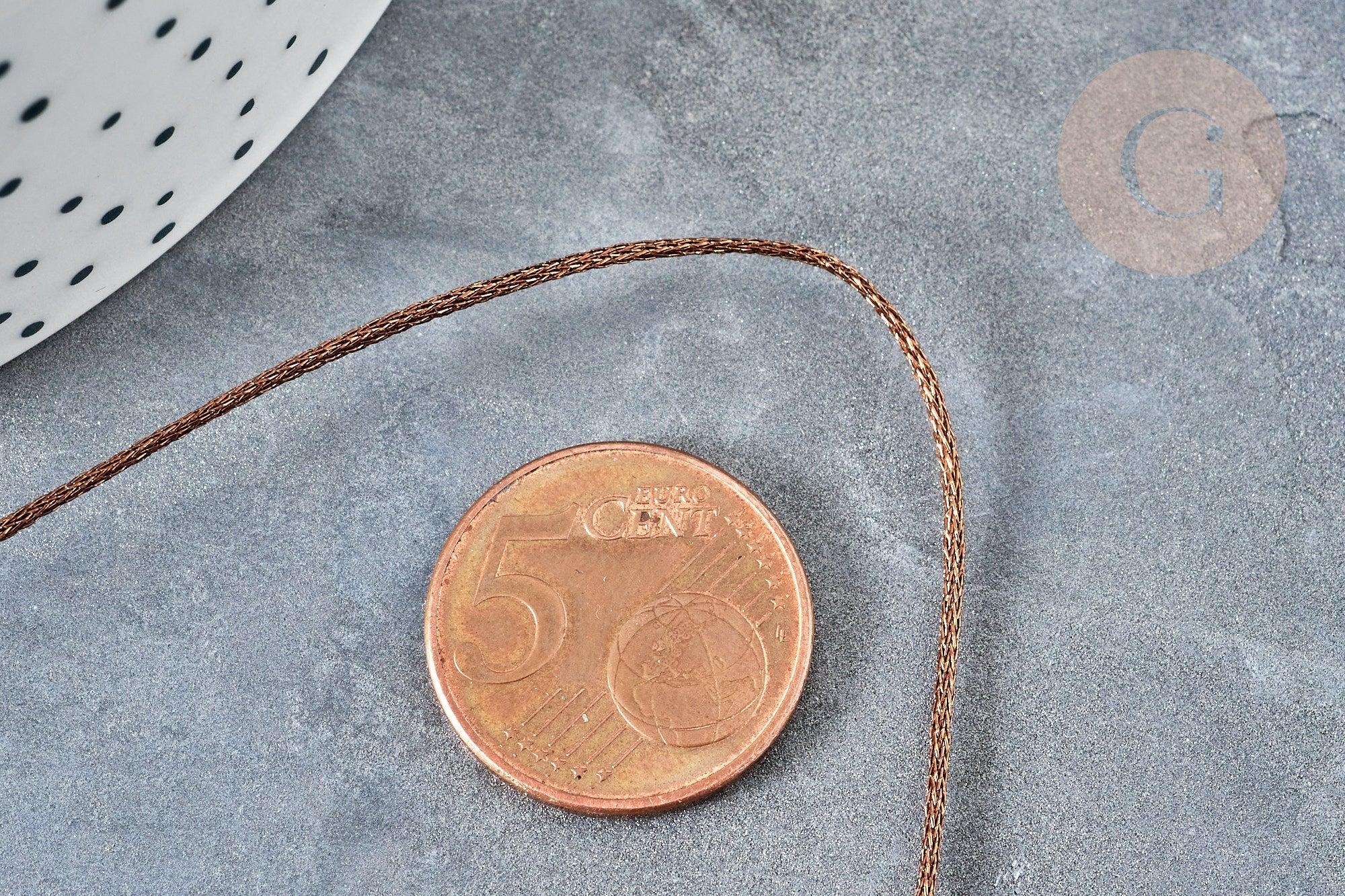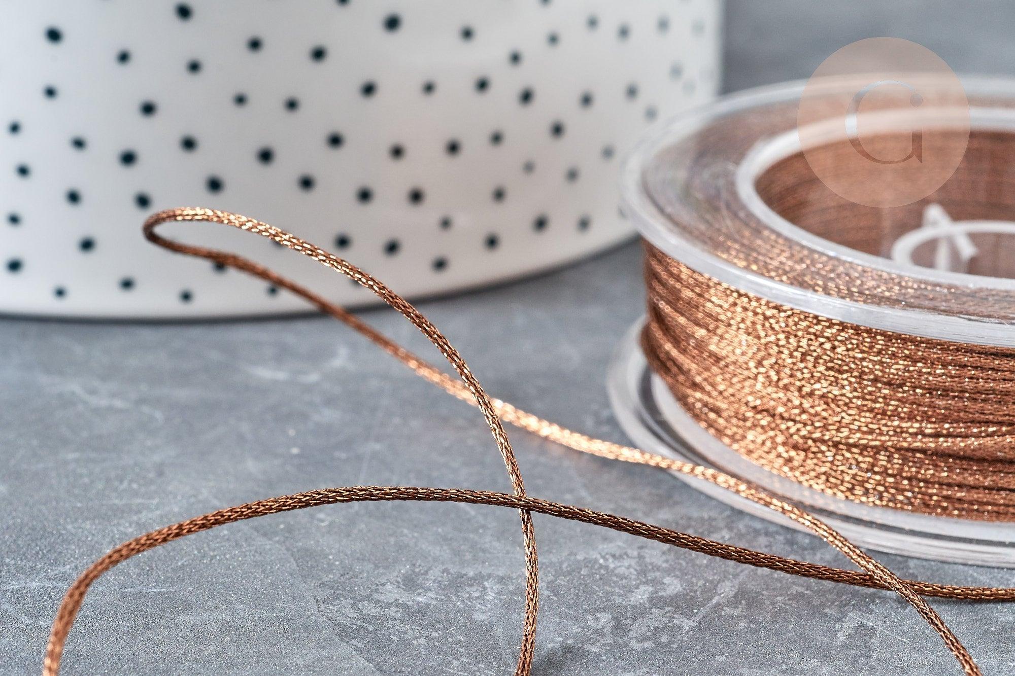 Cordon marron Métallisé tressé polyester 1mm, cordon métallisé pour bijoux , x1 mètre G8173