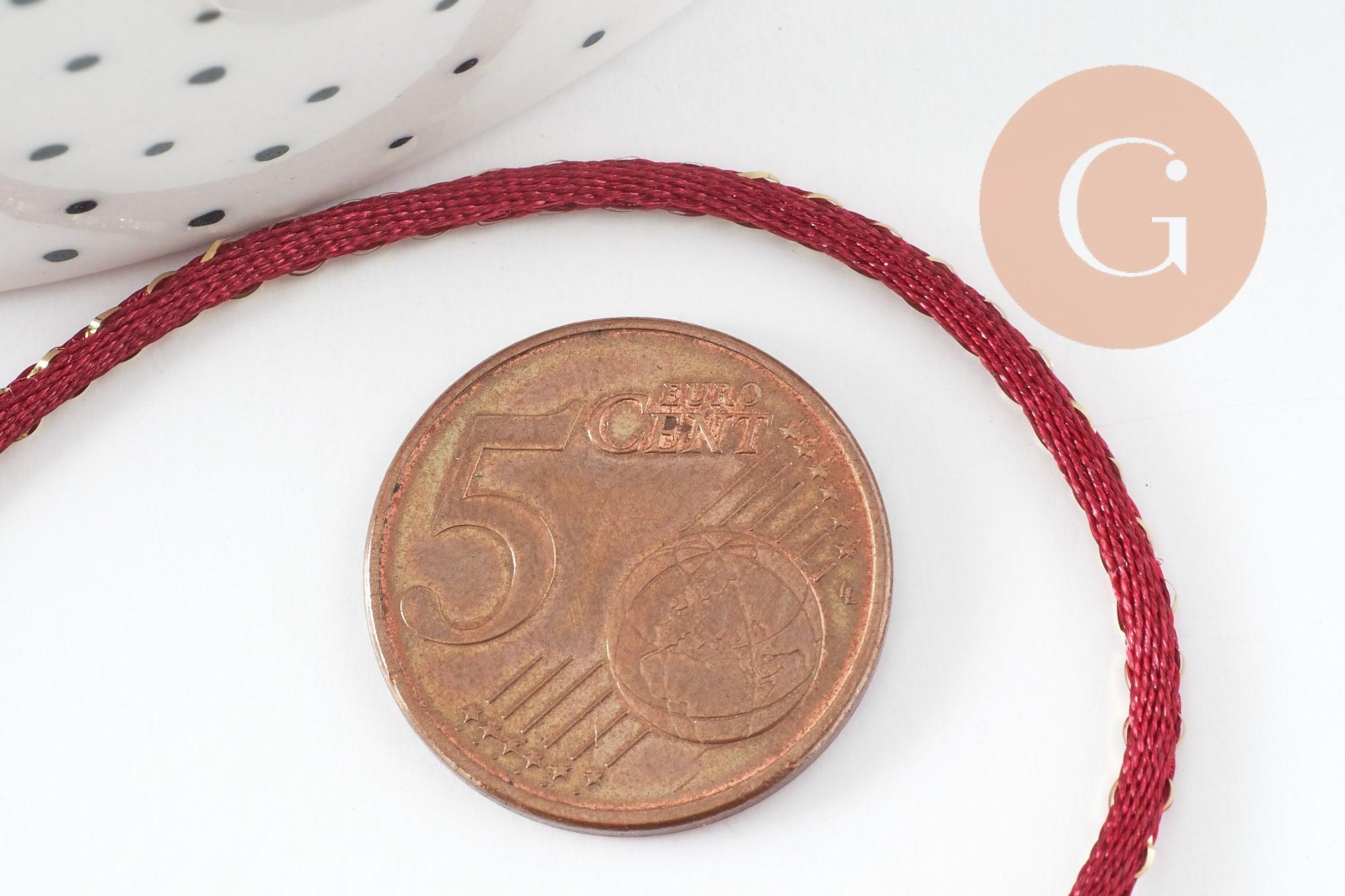 Para realizar sus joyas, accesorios, bolsos y ropa o para álbumes de recortes y otros pasatiempos creativos, le ofrecemos 1 metro de cordón de nailon rojo oscuro realzado con un hilo dorado.