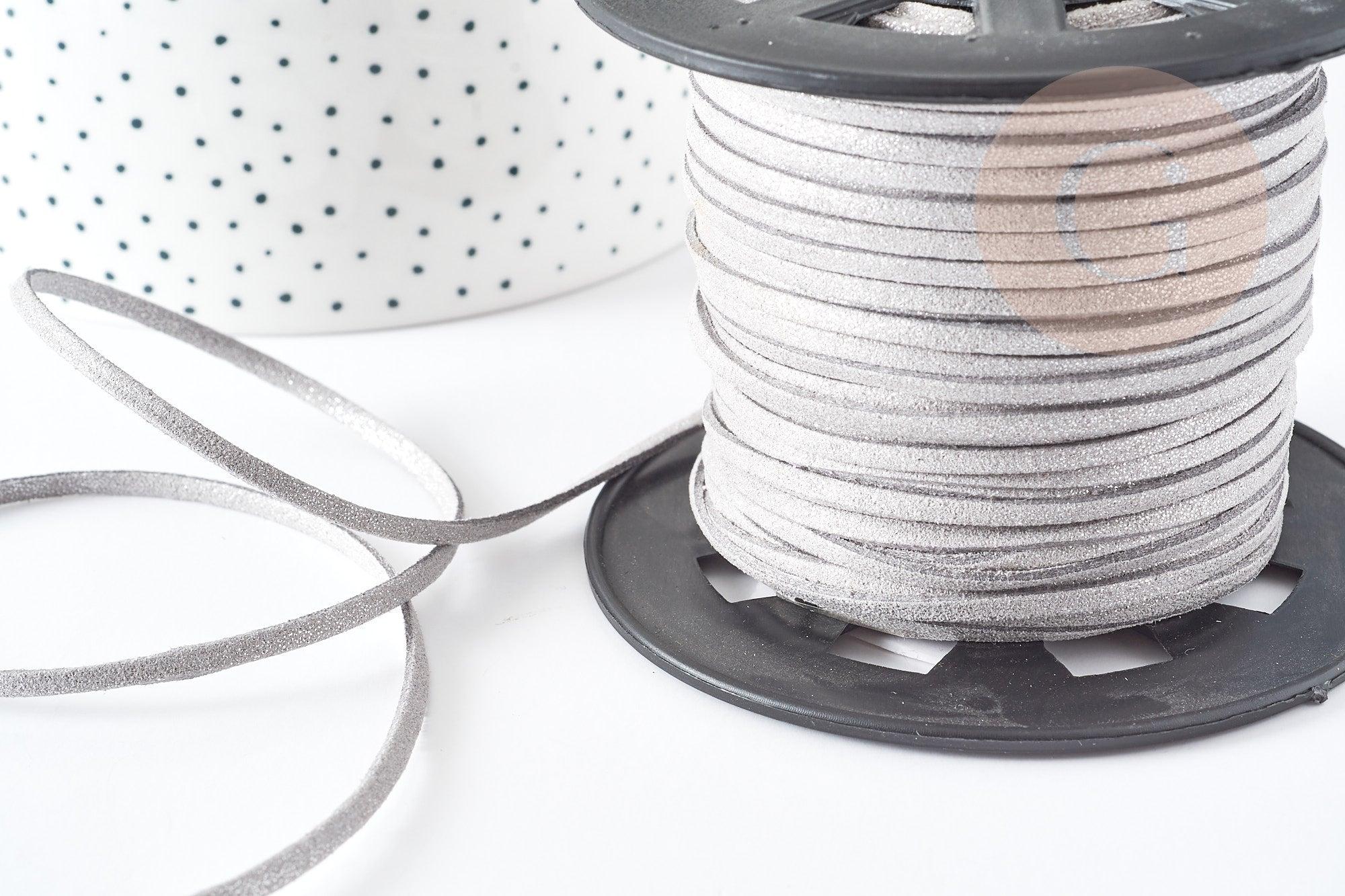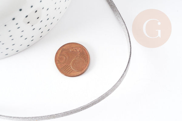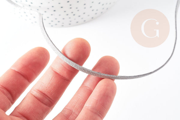 Cordon suédé gris à paillettes imitation cuir 3-4mm, x1 mètre (G1646)