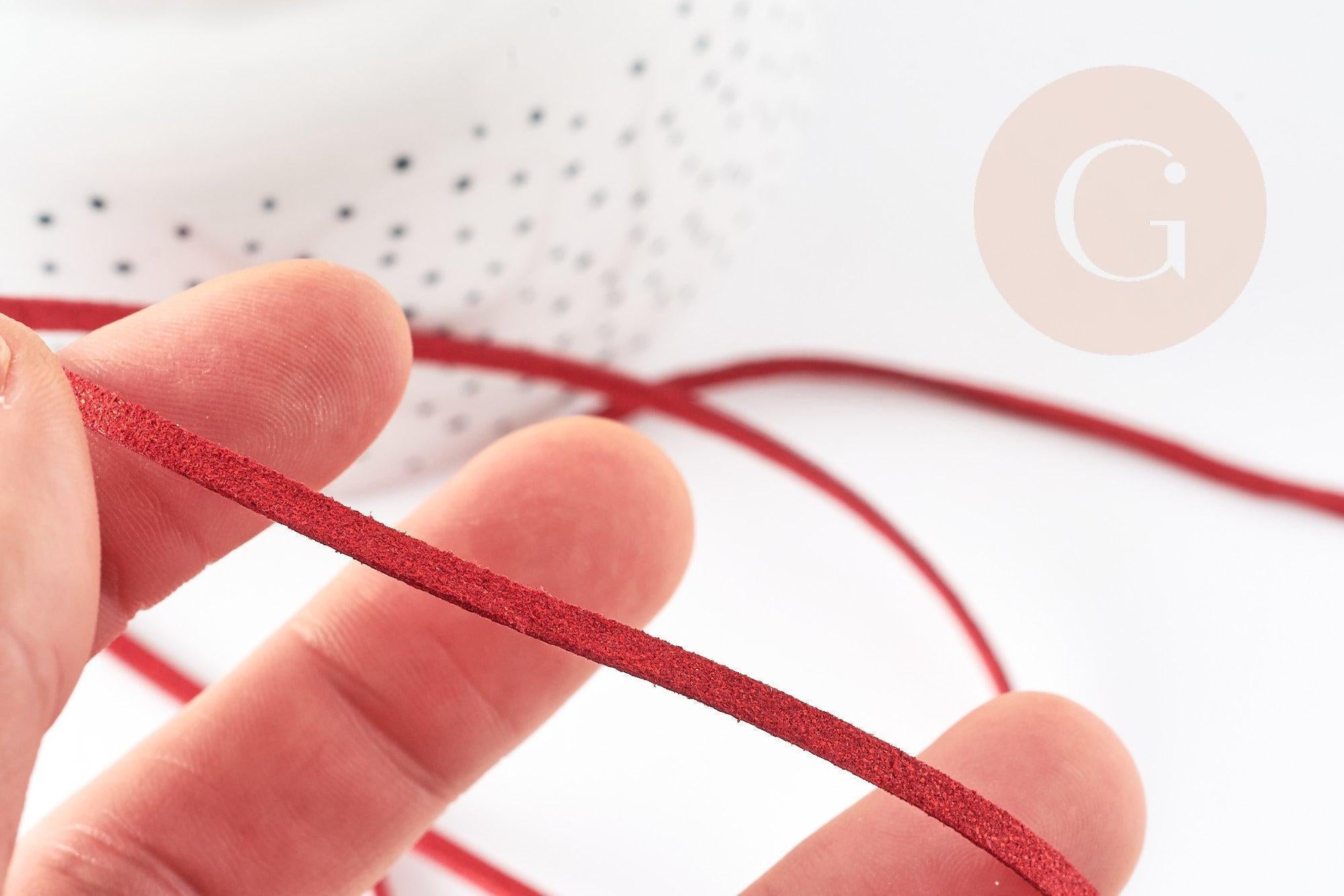 Dale un toque de brillo a tus creaciones con nuestro cordón de ante rojo con purpurina , una imitación de cuero de alta calidad. Con un ancho de 3-4 mm y disponible en longitudes de 1 metro, este cordón es ideal para añadir un toque elegante y festivo a tus proyectos de joyería DIY.