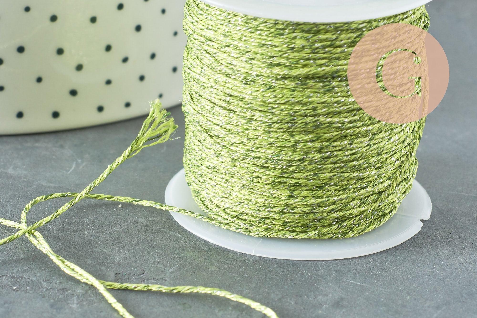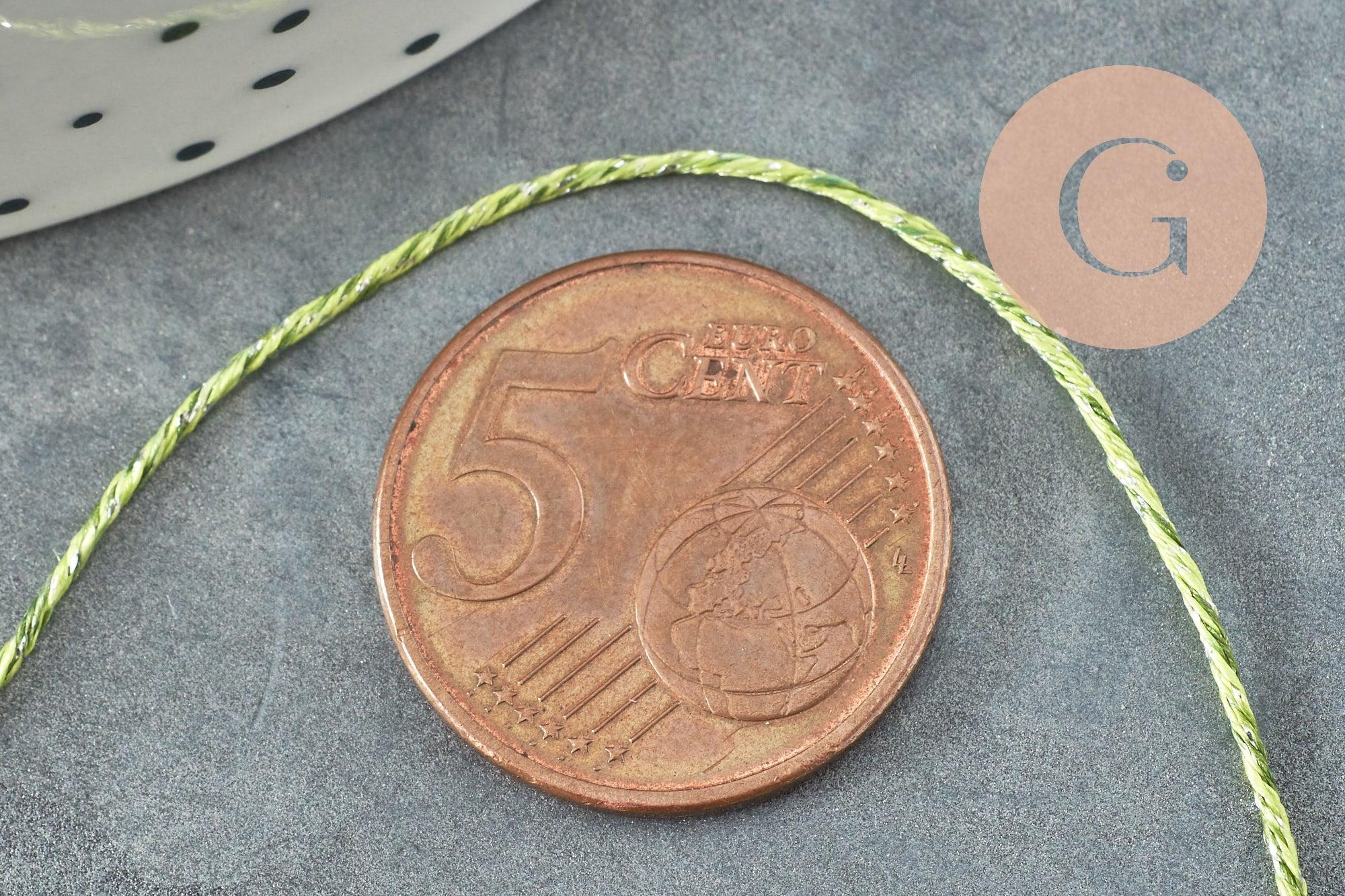 Un magnífico hilo de nailon verde y plateado, para utilizar en la confección de joyas, álbumes de recortes, creación de accesorios y bordados.