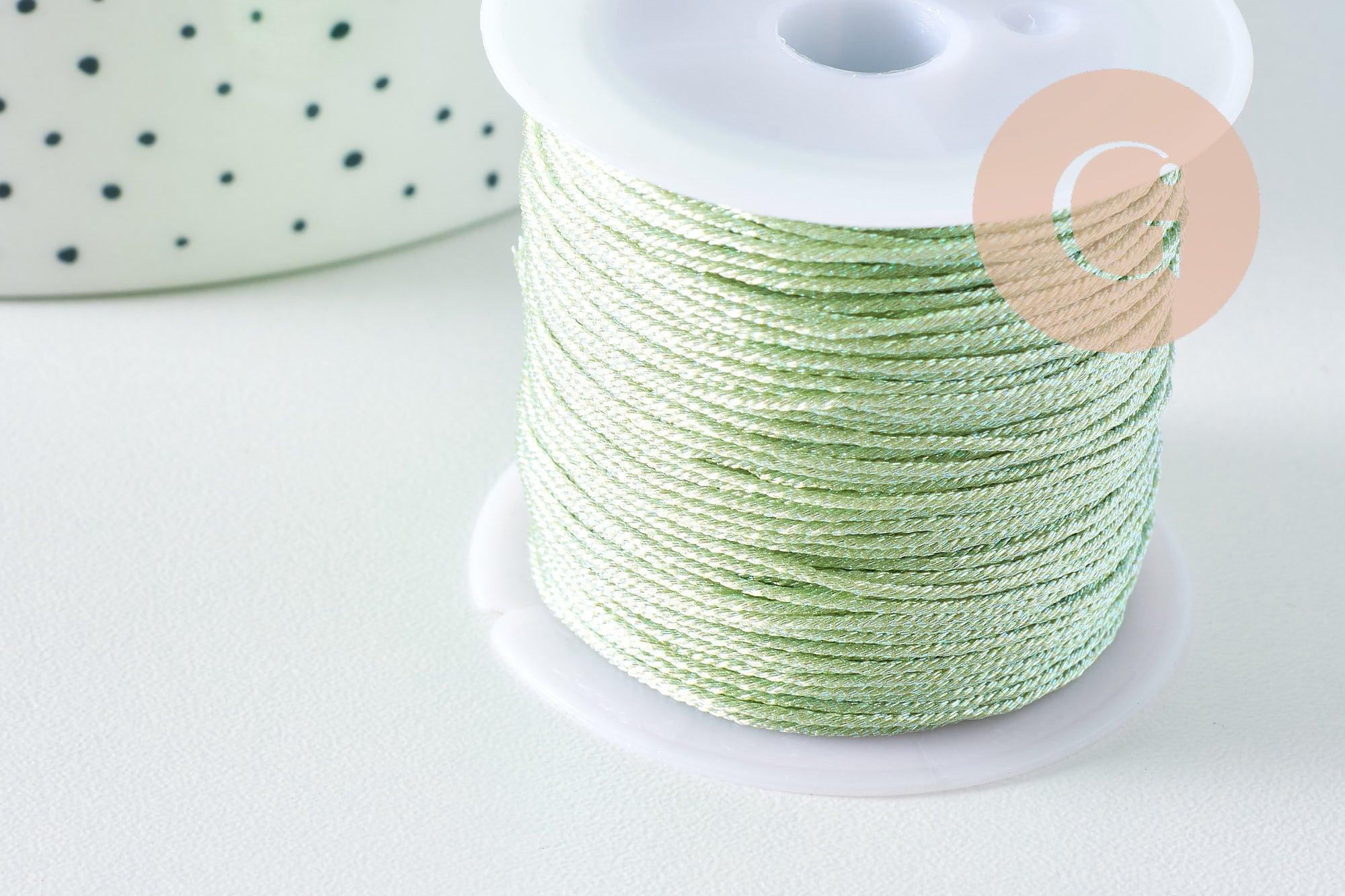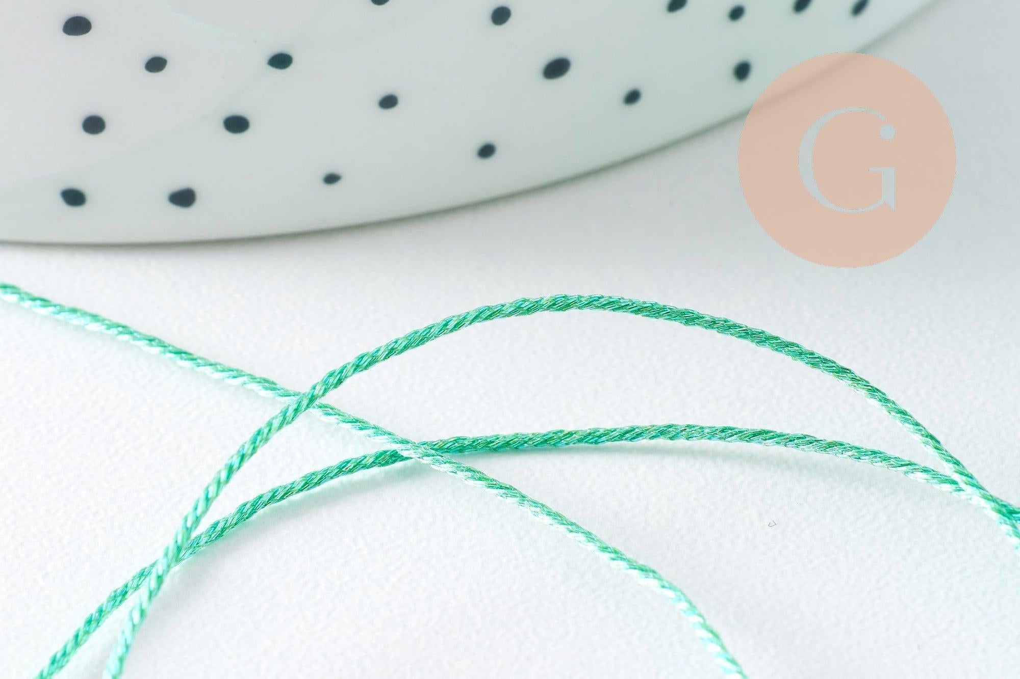 Este cordón de poliéster verde metalizado es imprescindible para tus creaciones de joyería DIY. Combina brillo, flexibilidad y resistencia, para dar un toque de brillo a tus pulseras, collares o tobilleras.