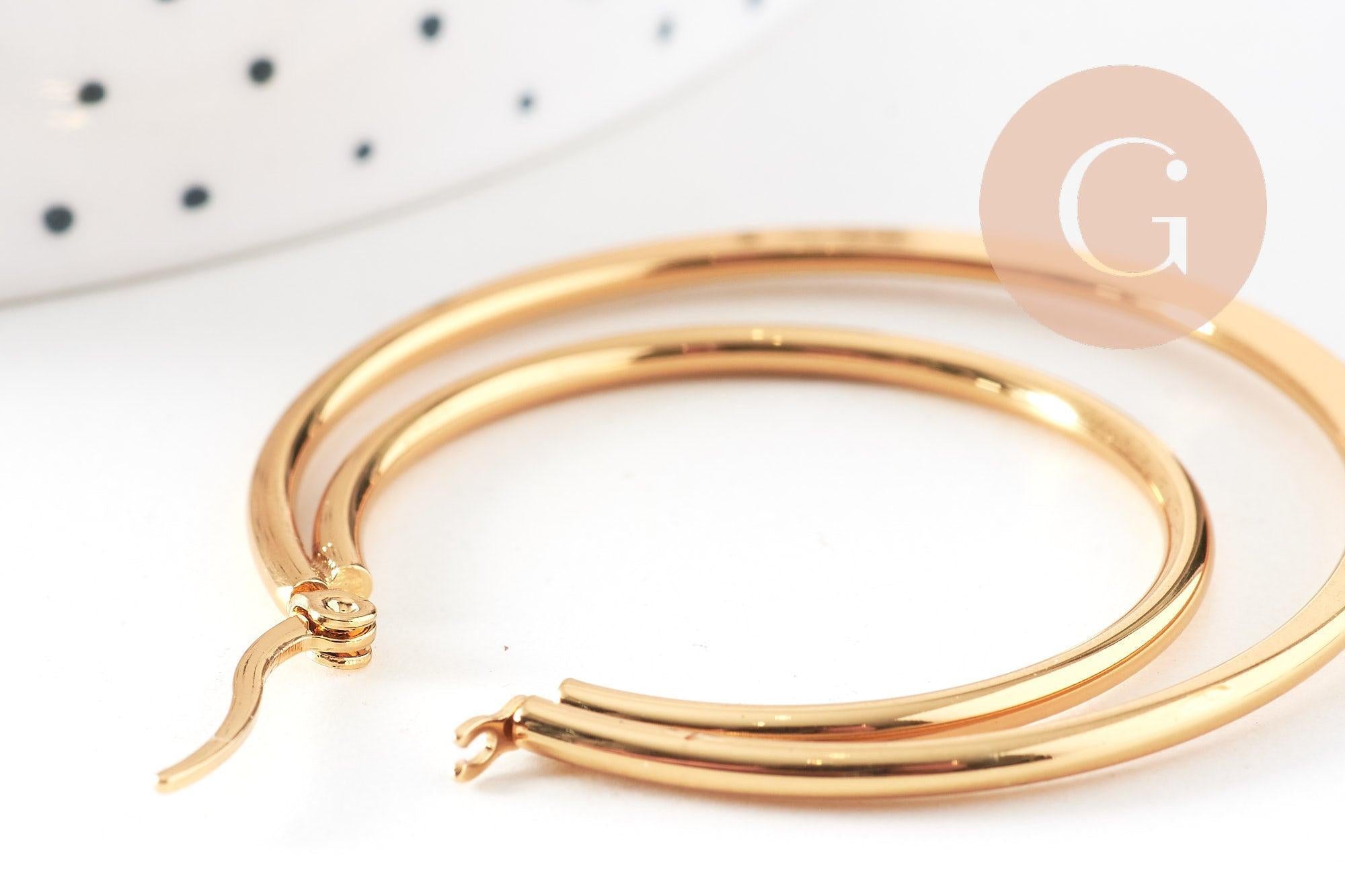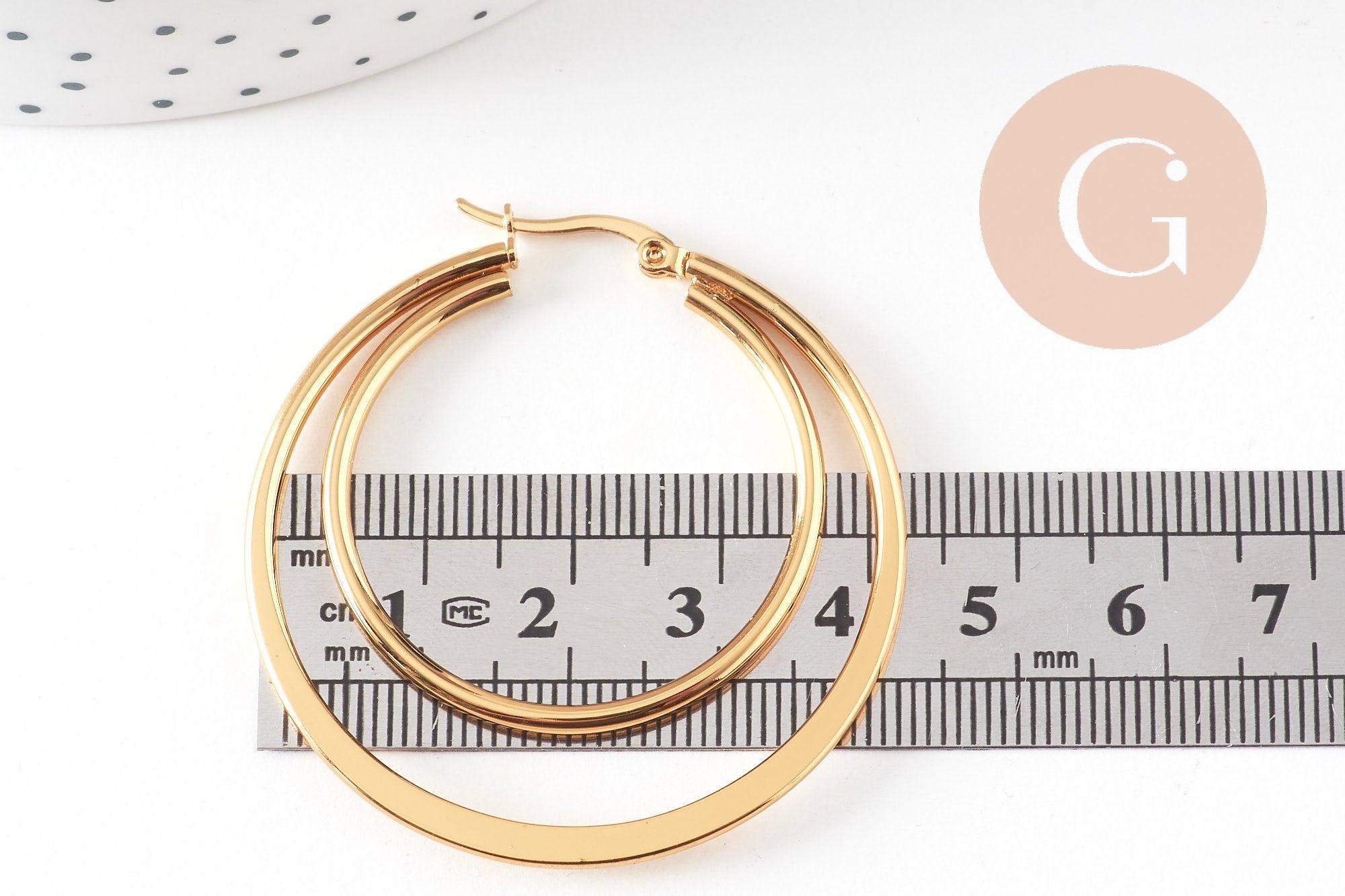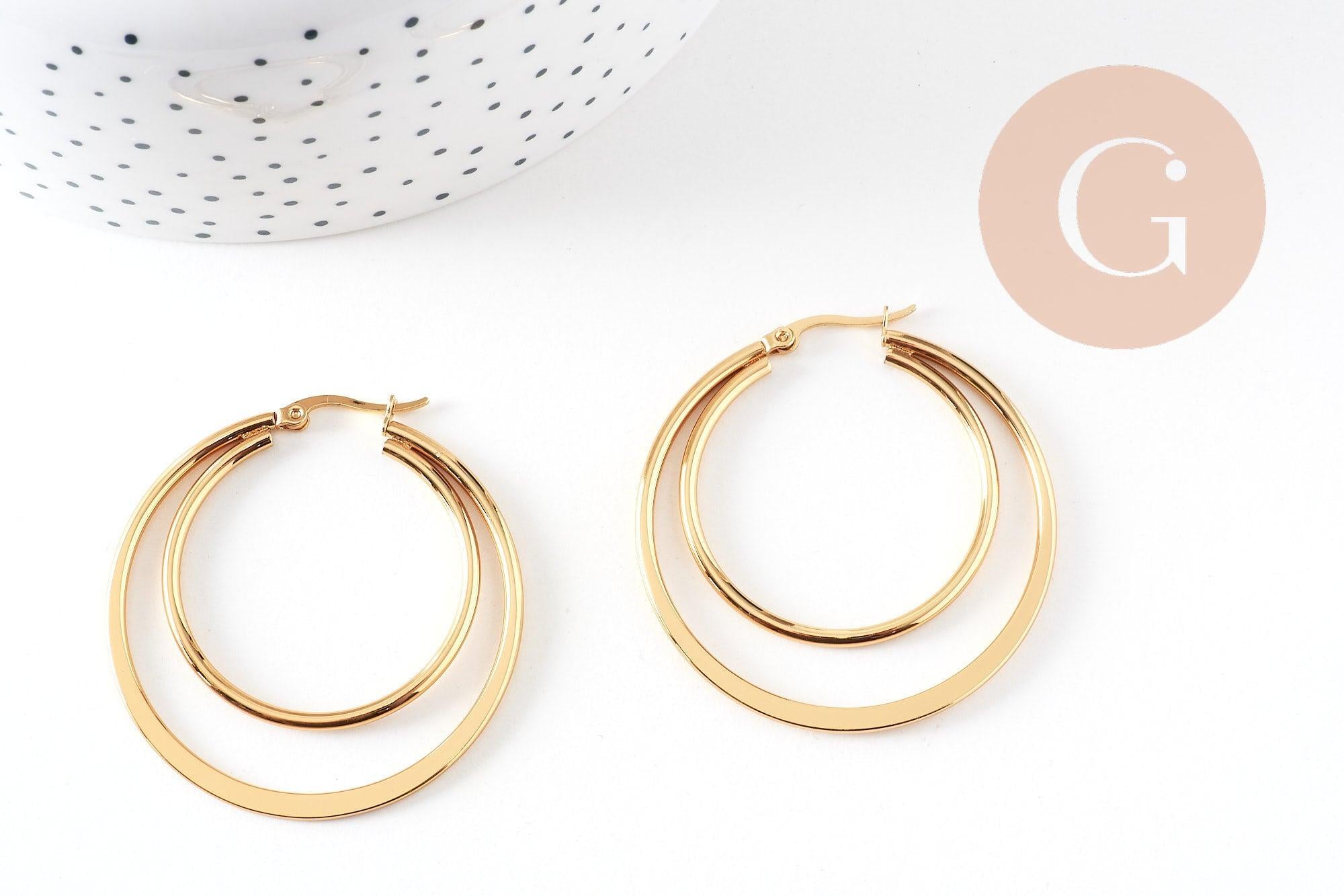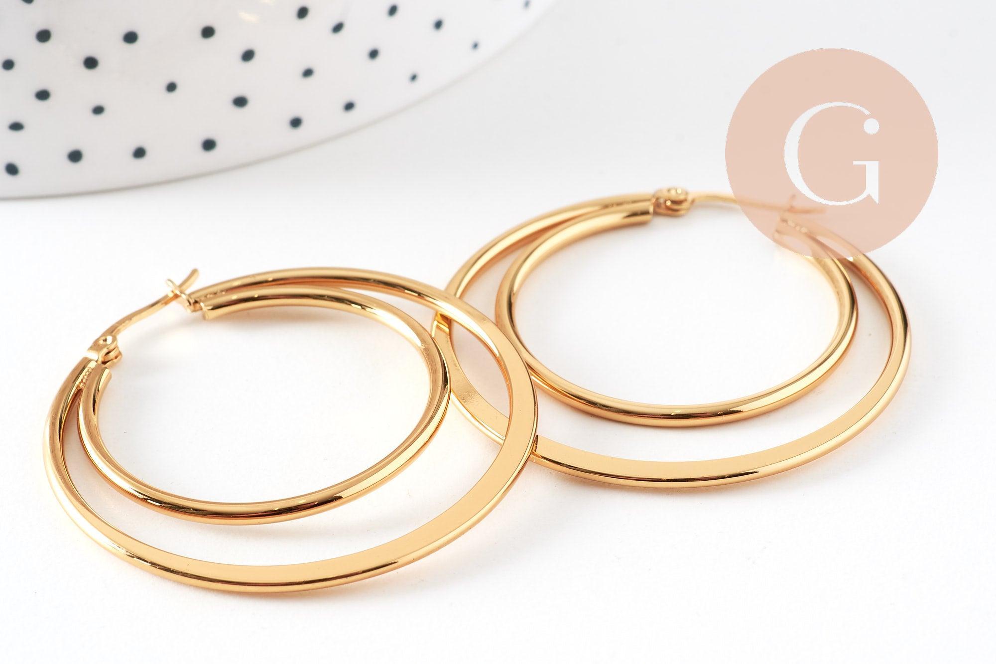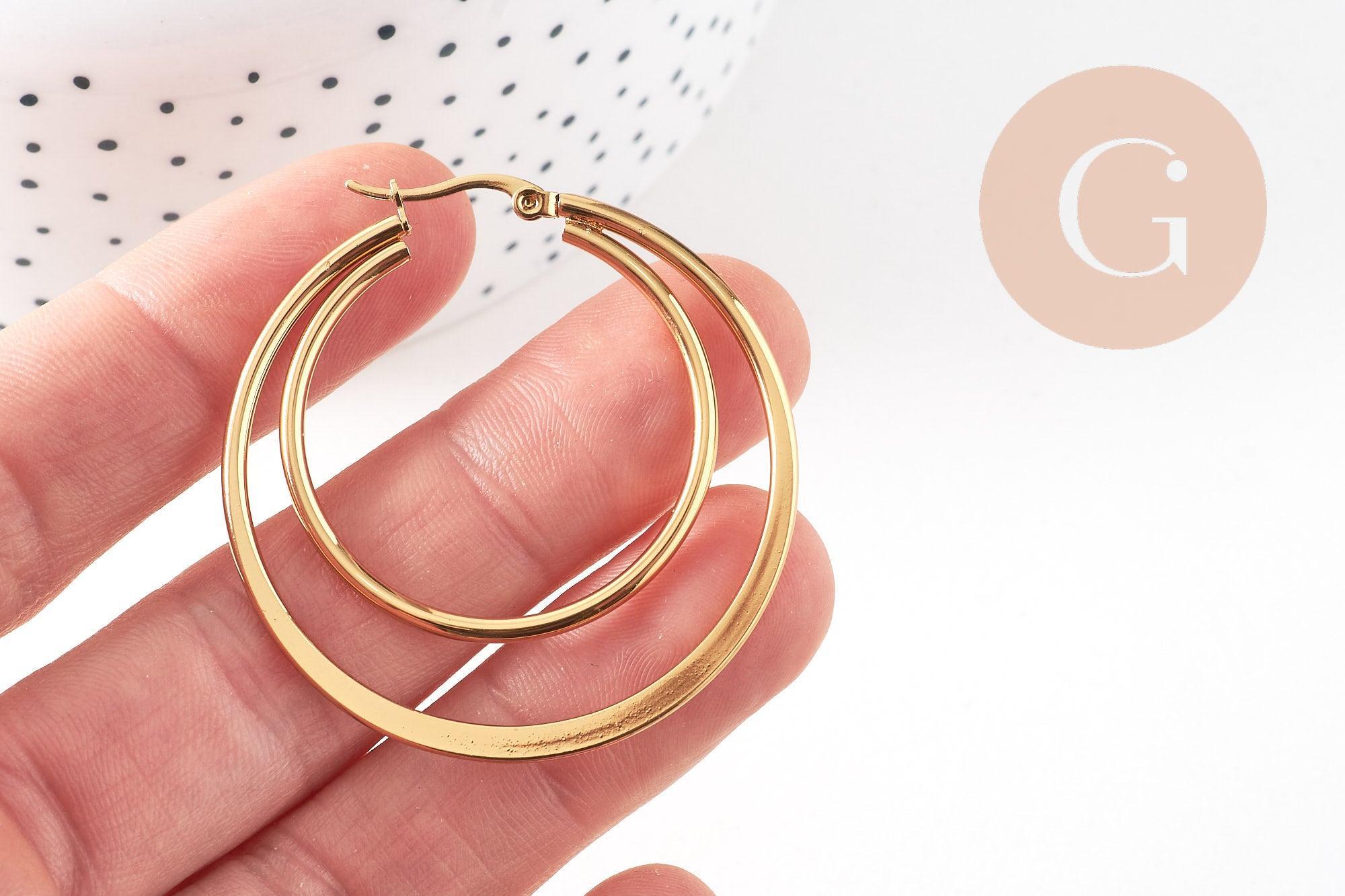 Créoles double acier inoxydable 304 doré 46mm, la paire (G1311)