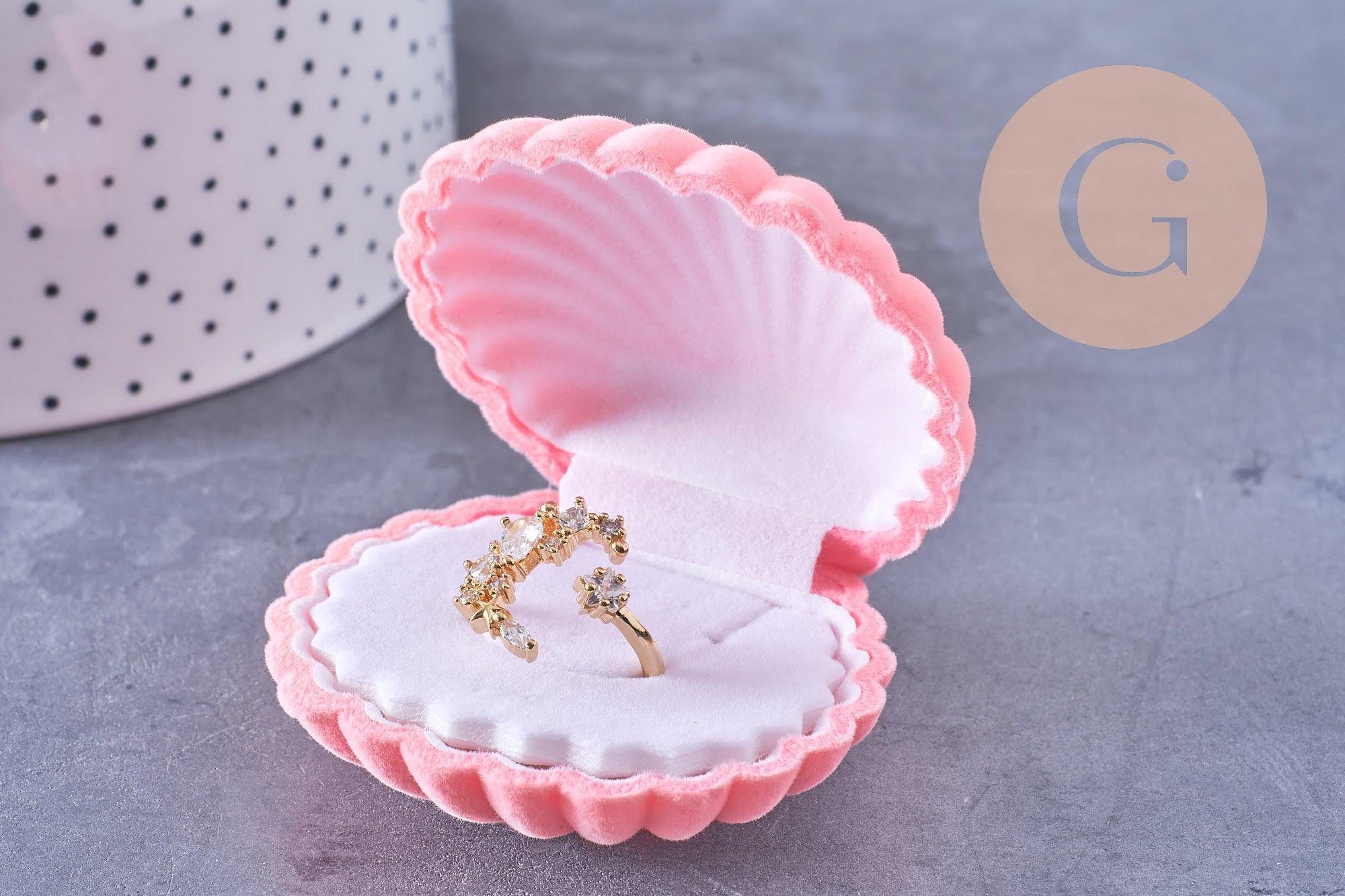 Déjate seducir por esta caja de conchas en terciopelo rosa con interior blanco, para ofrecer tus joyas en un bonito packaging.
