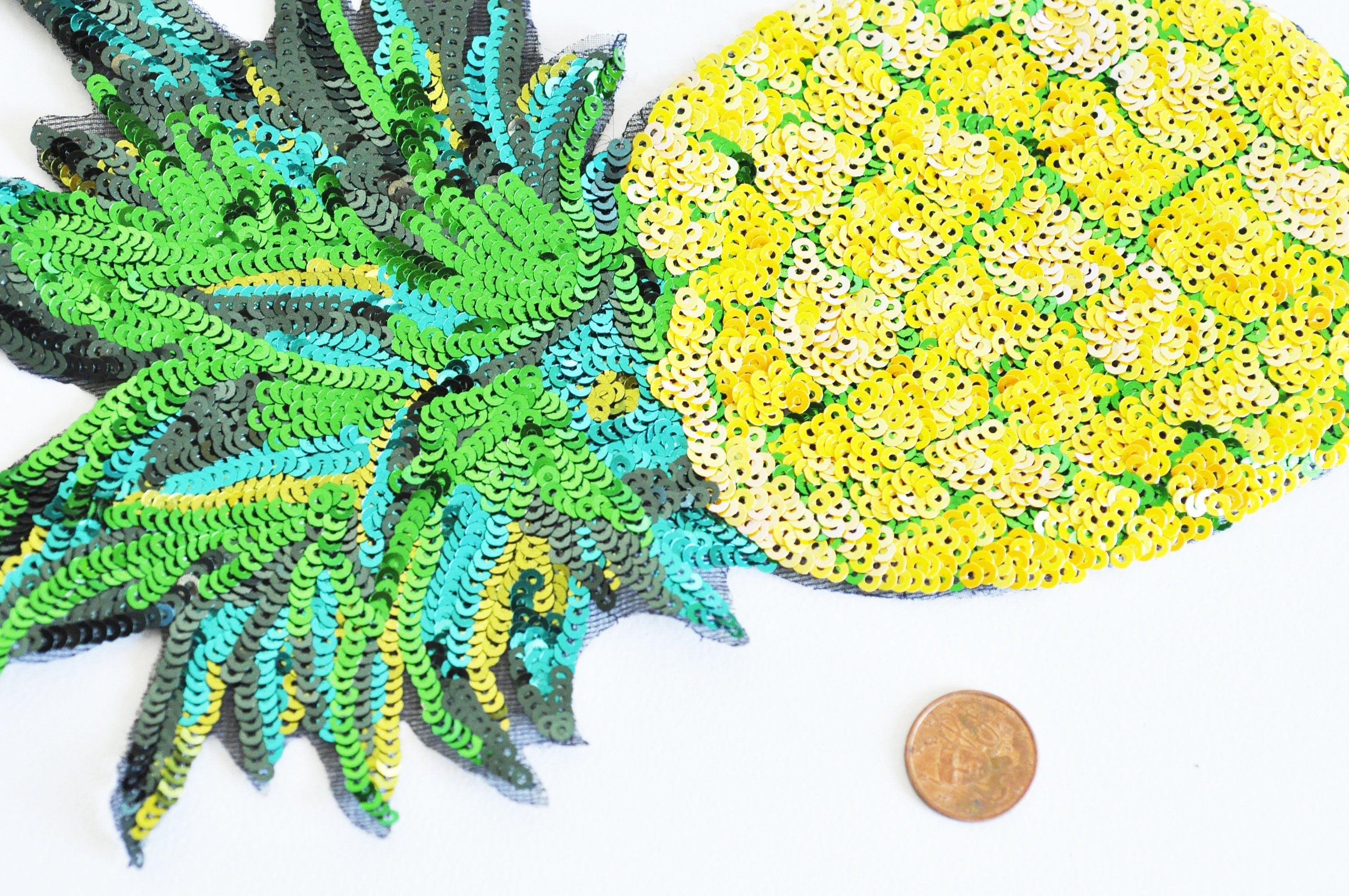 Parche termoadhesivo bordado piña amarillo verde dorado personalización de ropa, parche termoadhesivo, parche bordado, 28cm, cada uno Para personalizar tu ropa y personalizar tus accesorios, adopta este parche bordado con lentejuelas termoadhesivas que representan una piña bordada. Ancho: 16,2 cm...