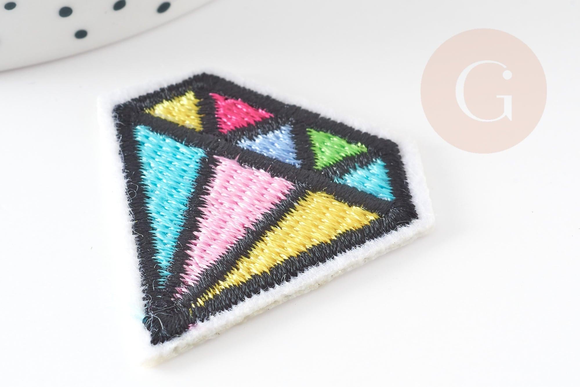 Parche termoadhesivo bordado de diamantes multicolores para personalización de ropa, parche termoadhesivo, parche bordado, 39mm, x2 G5079