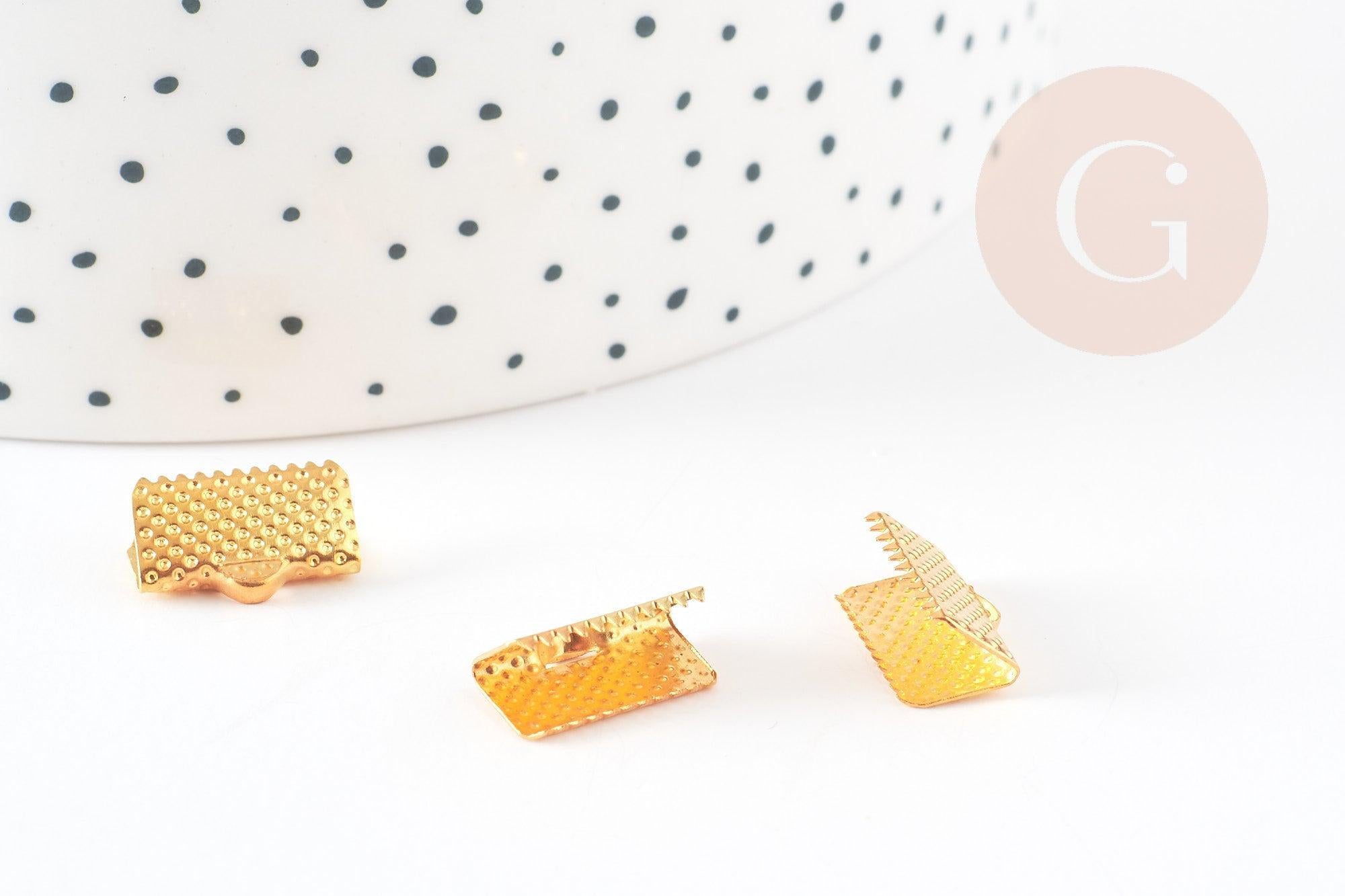 Embouts ruban métal doré à pincer 13mm, x10 (G4862)