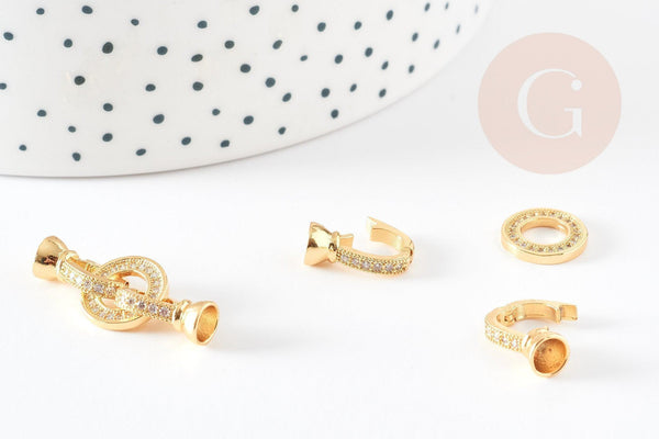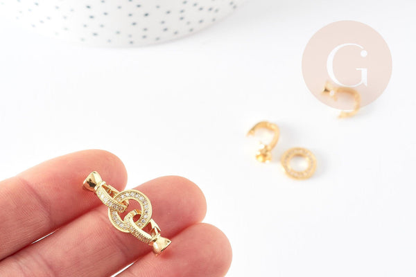 Añade un toque de sofisticación y brillo a tus joyas con este impresionante cierre de clip de latón chapado en oro, adornado con circonitas . Perfecto para tus creaciones de alta gama, este cierre se convierte en un auténtico elemento decorativo.