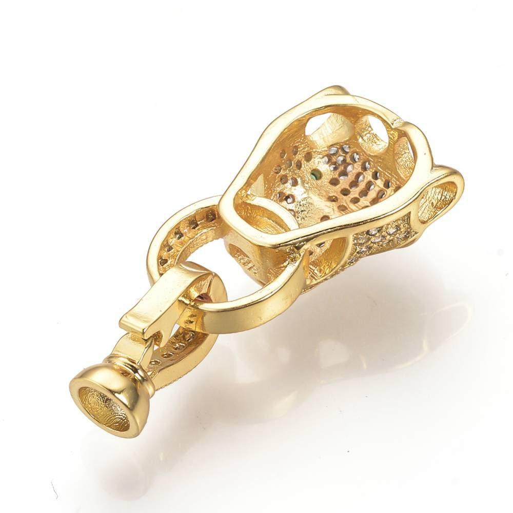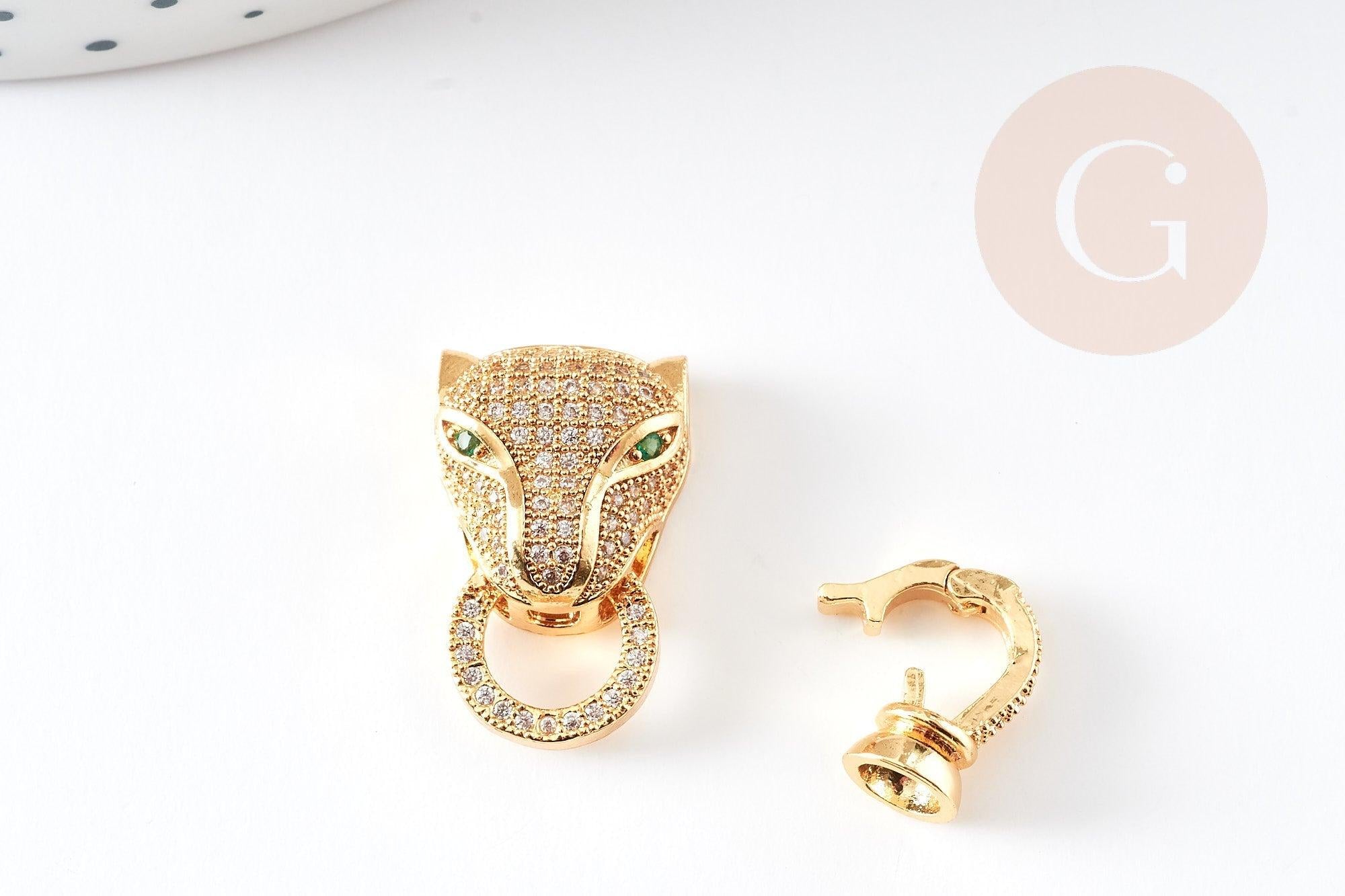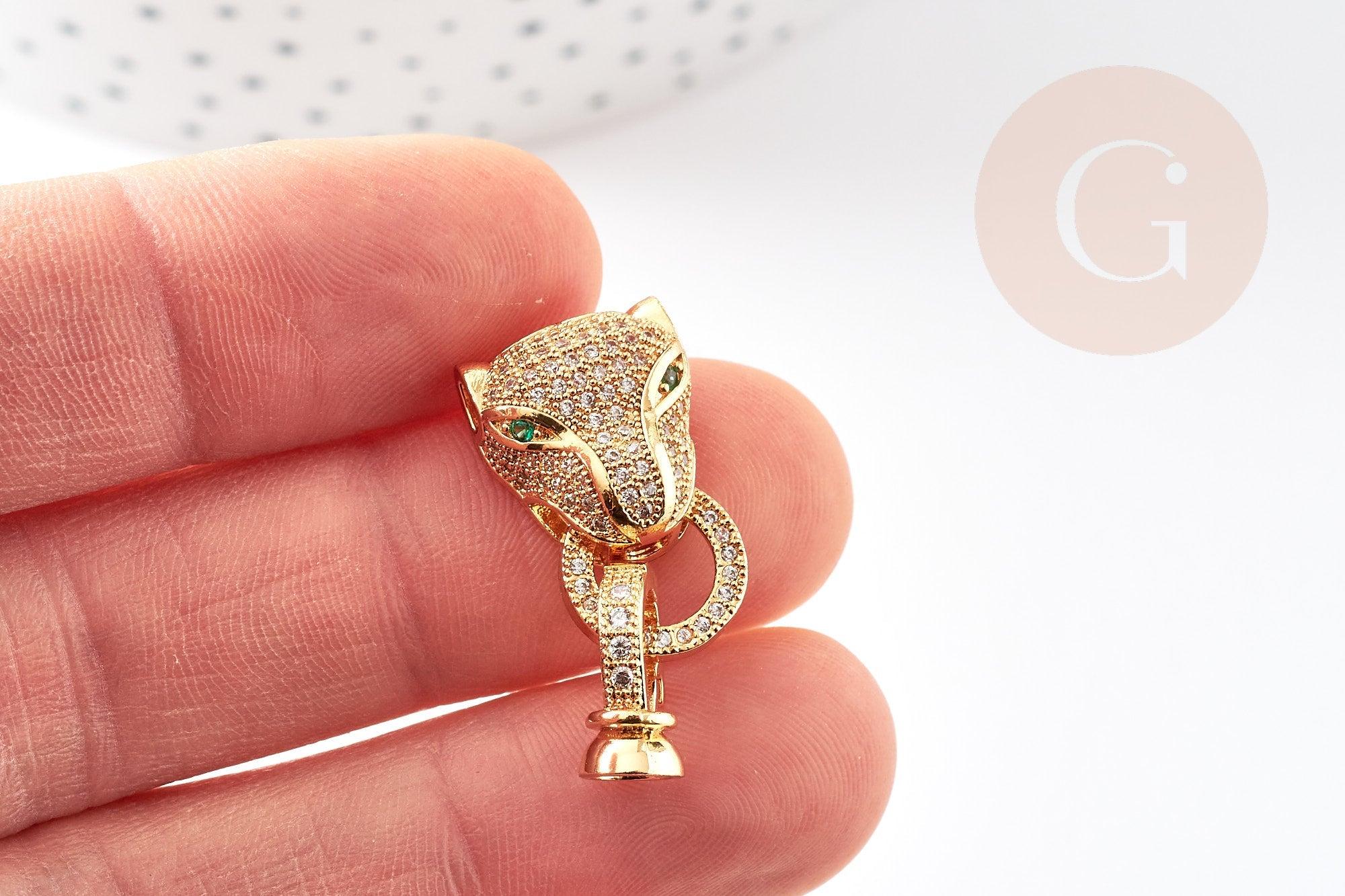 Dale un toque felino y brillante a tus creaciones con este broche de pantera de latón bañado en oro de 18 quilates , adornado con circonitas. Robusto, elegante y moderno, este broche se convertirá en la pieza central de tu bisutería DIY.