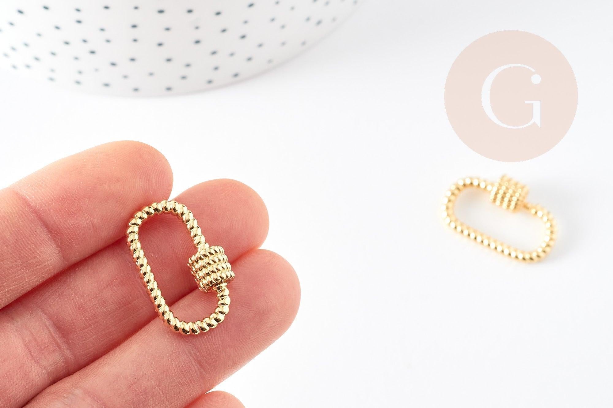 Dale personalidad a tus creaciones con este gran cierre de rosca de latón chapado en oro . Su elegante diseño y acabado de calidad lo convierten en la pieza central de tus joyas modernas, duraderas y fáciles de llevar.