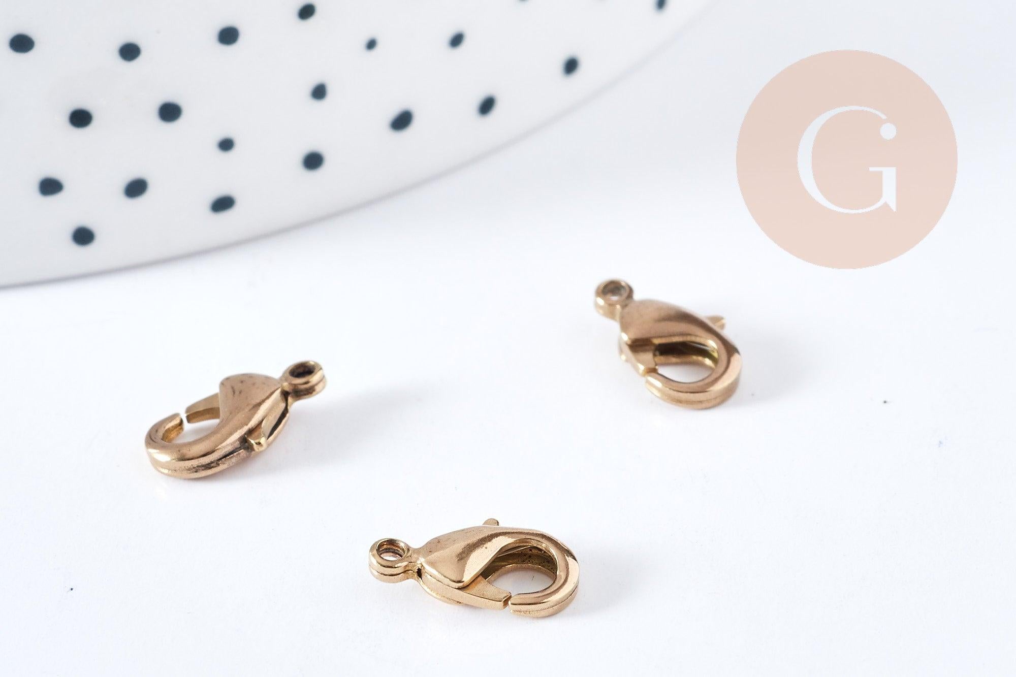 Fermoir mousqueton laiton brut 12mm, fabrication de bijoux laiton brut x5 G8952