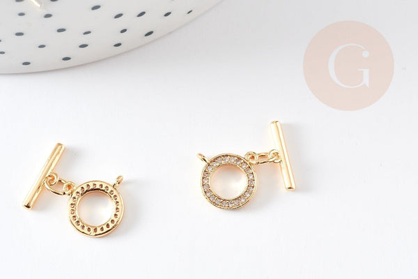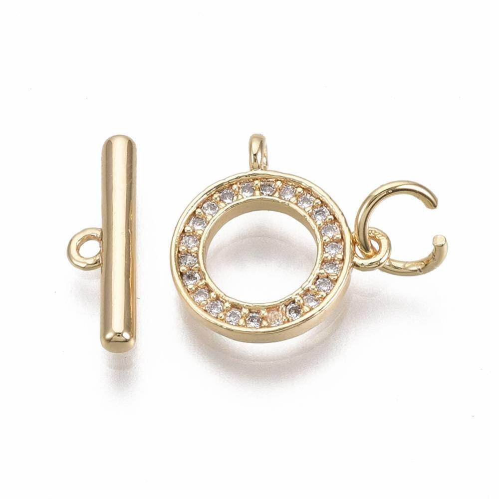 Un cierre en T de latón bañado en oro de 18 quilates y decorado con circonitas blancas para tus collares, pulseras y collares: sólido y de calidad, resaltará todas tus joyas DIY.