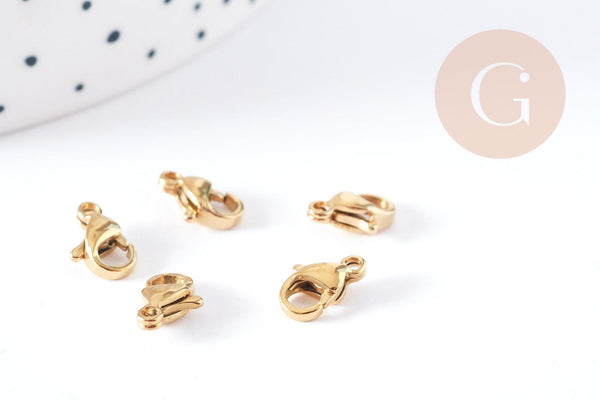 Fermoirs mousquetons acier 304 inoxydable doré IP 9mm, x5 (G0107)