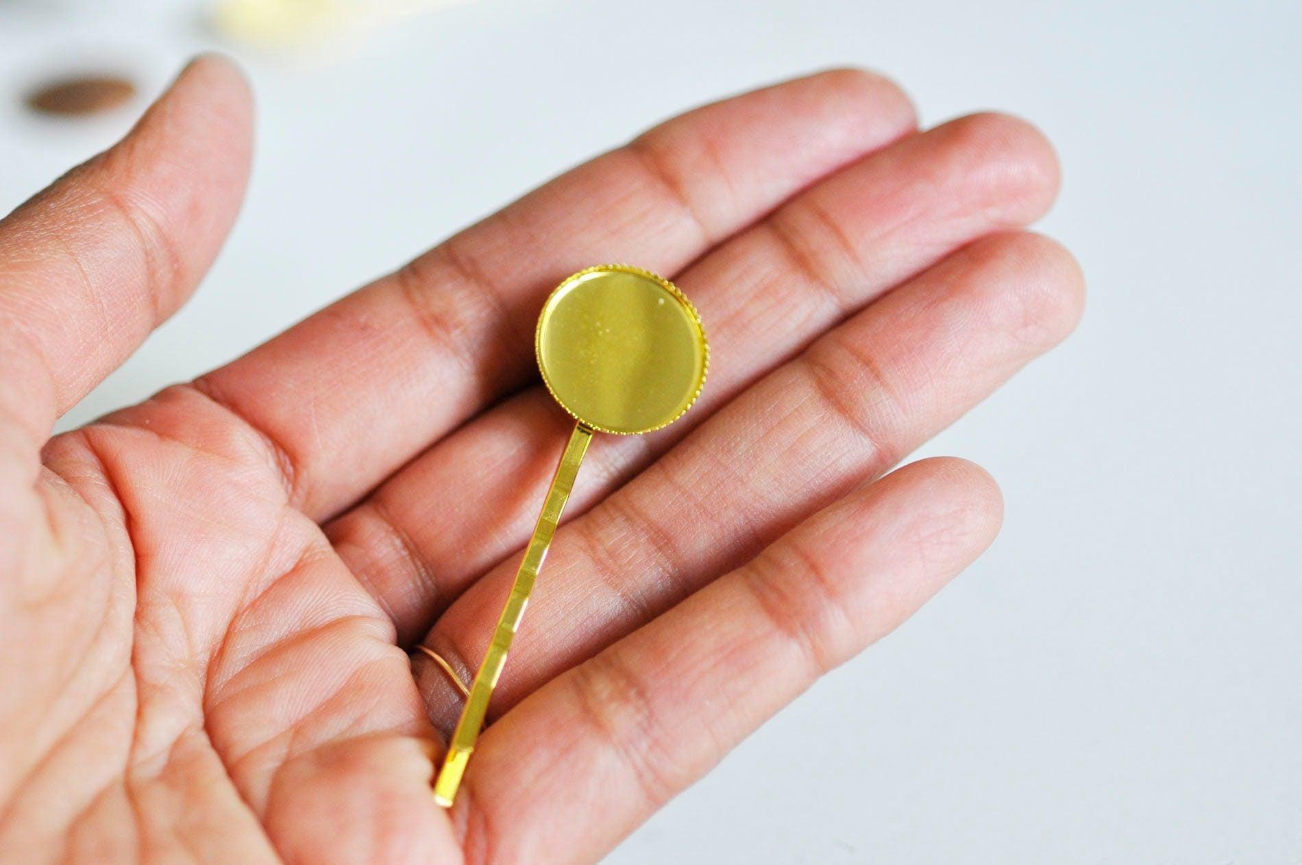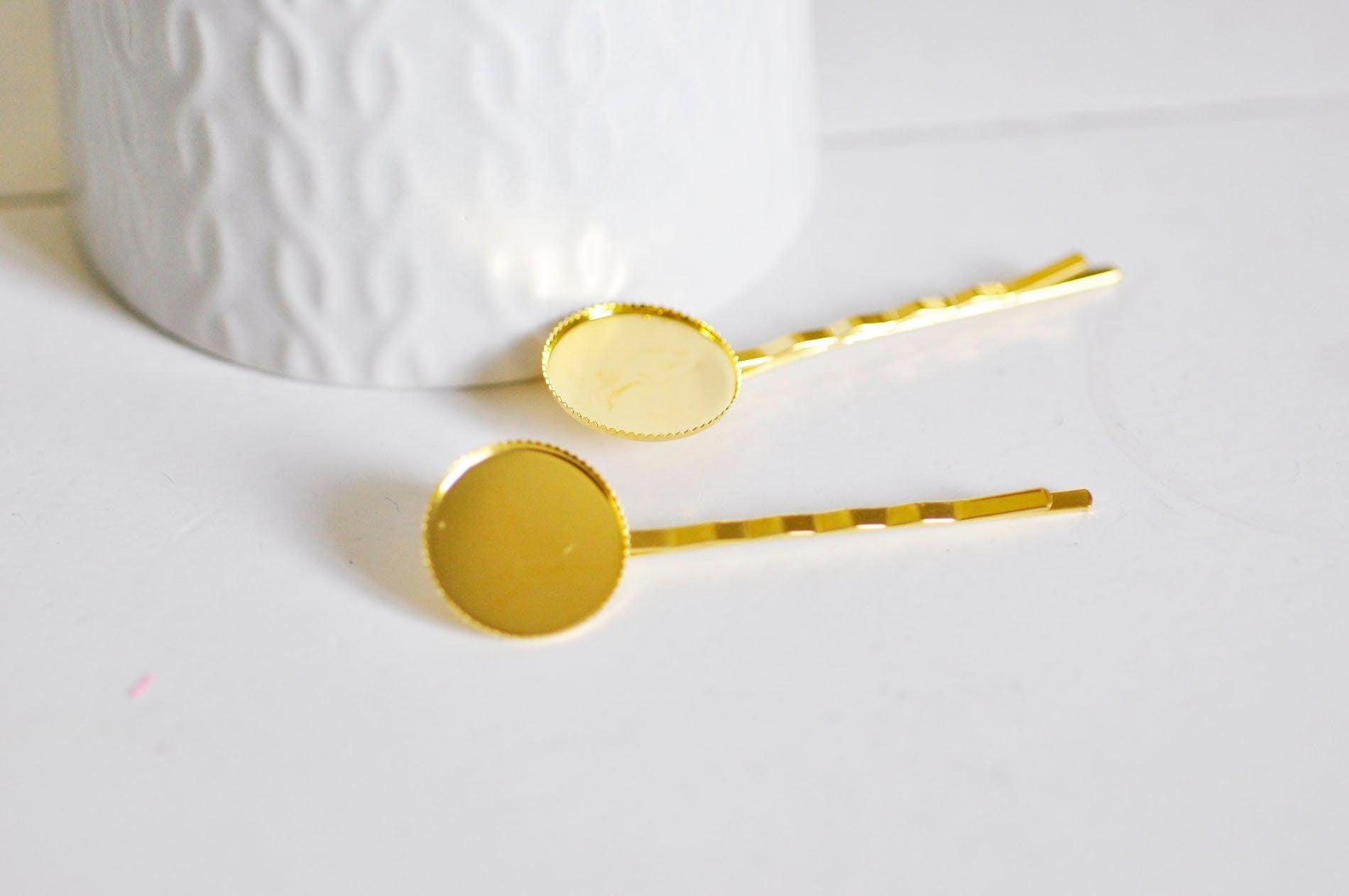 Soportes de barreta de metal dorado soporte de cabujón, suministros creativos, barreta dorada, accesorios para el cabello, fabricación de joyas, 18 mm, juego de 5 Un juego de 5 soportes para pasadores de metal dorado, que se pueden adoptar inmediatamente...