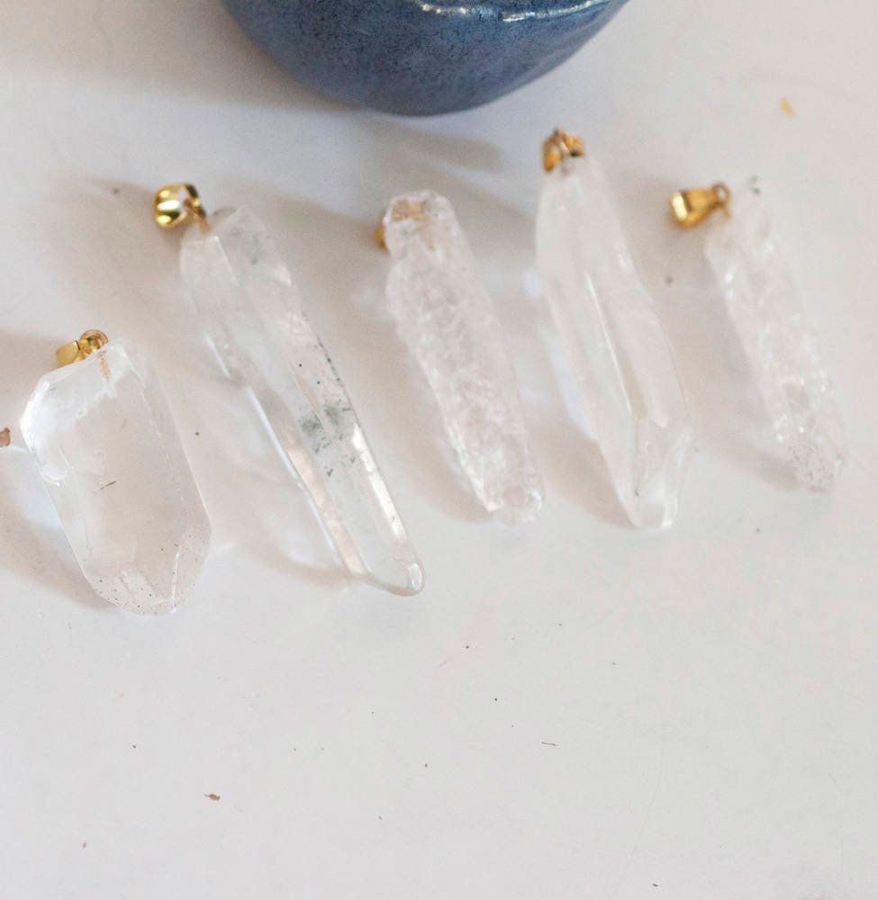Colgante de punta de cristal agrietado transparente de oro EP, suministros creativos, colgante de piedra, cristal natural, colgante de cristal, G2803