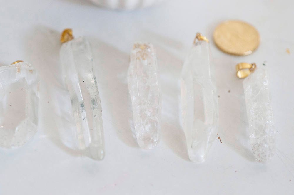 Colgante de punto de cristal agrietado transparente de oro, suministros creativos, colgante de piedra, cristal natural, colgante de cristal Déjese seducir por este magnífico colgante de cristal craquelado teñido de beige con soporte dorado. Podrás crear magníficos collares con este...