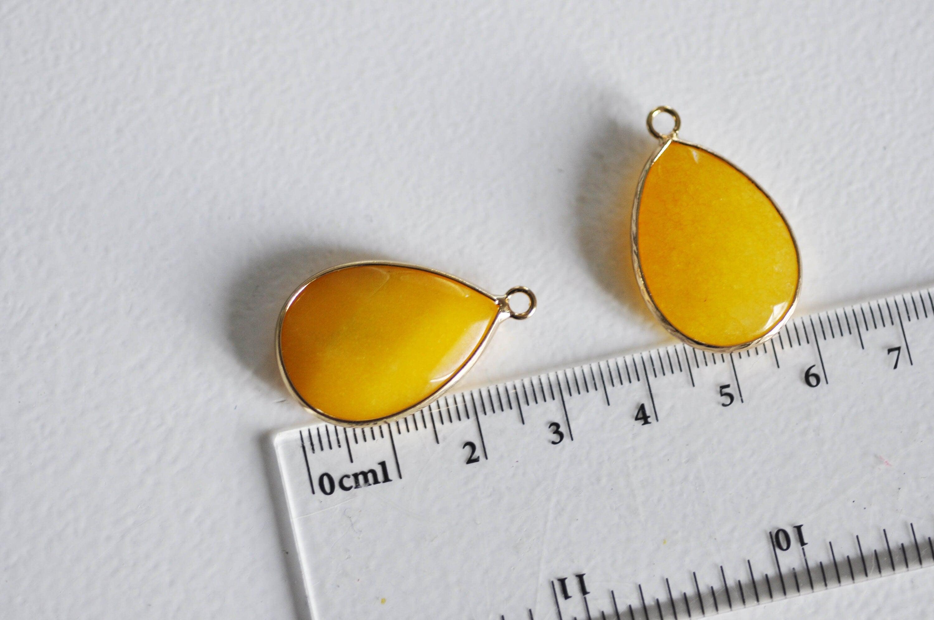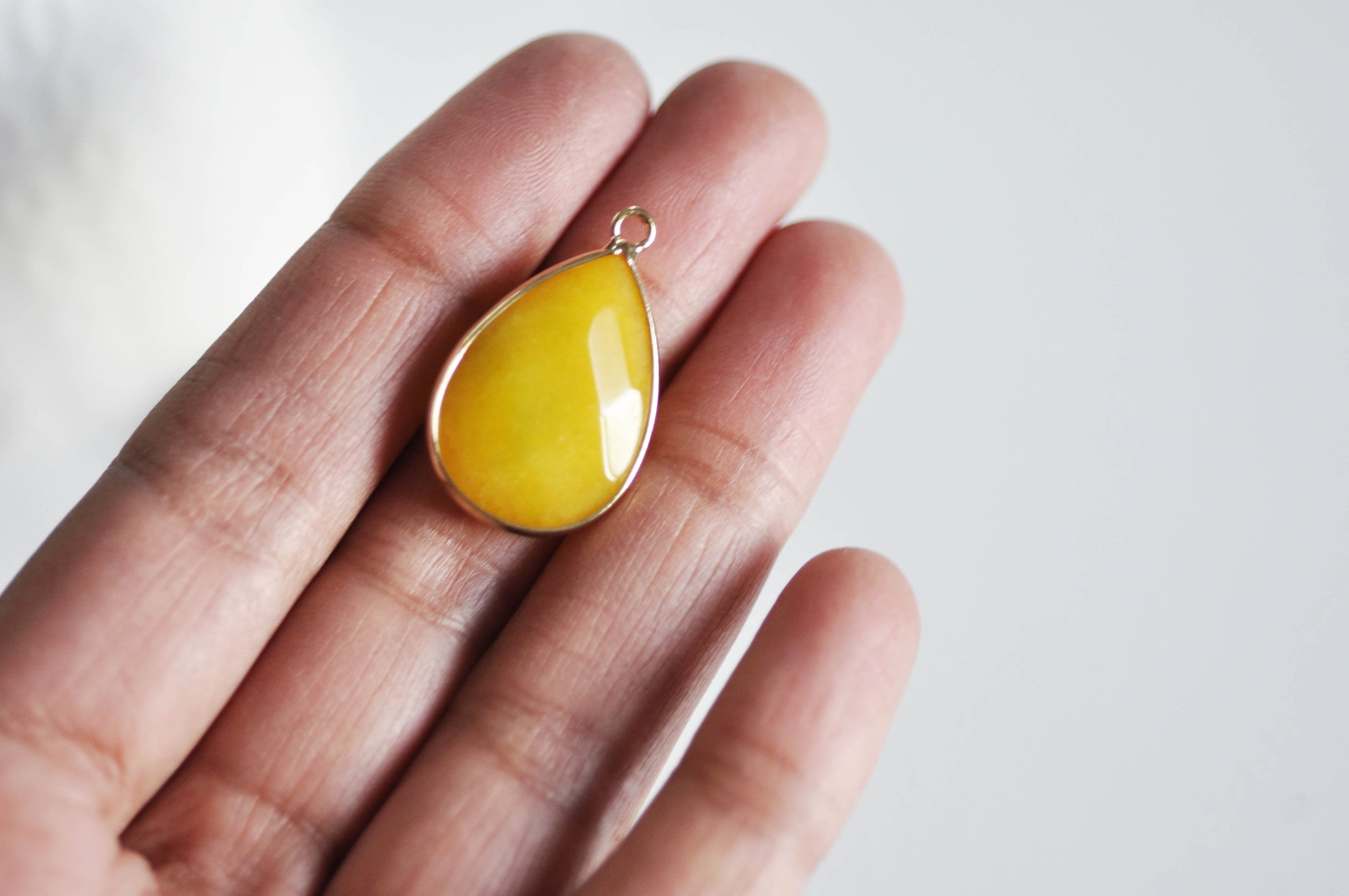 EP Pendentif goutte jade jaune doré, fournitures créatives,pendentif jade, pendentif pierre,jade naturel, pendentif jade,35mm-G1032