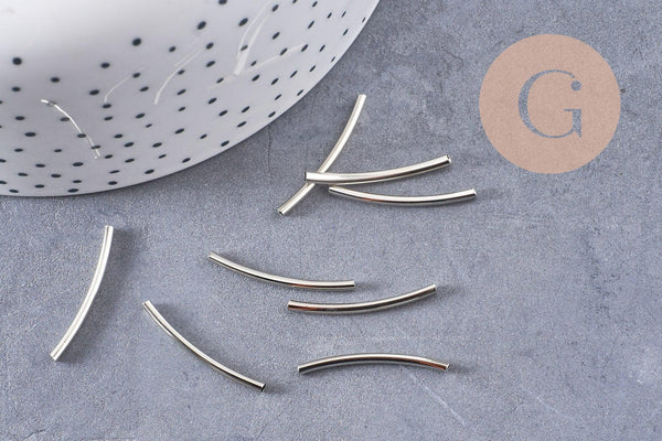 Un juego de 50 tubos curvados de color plata, perfectos para realizar joyas finas y elegantes como collares o pulseras.