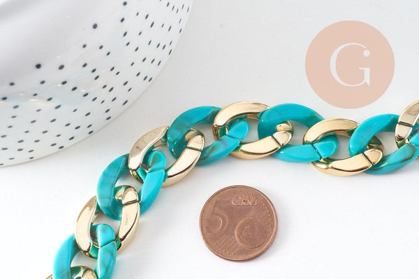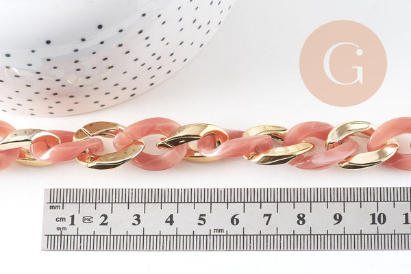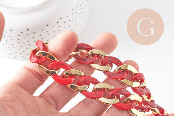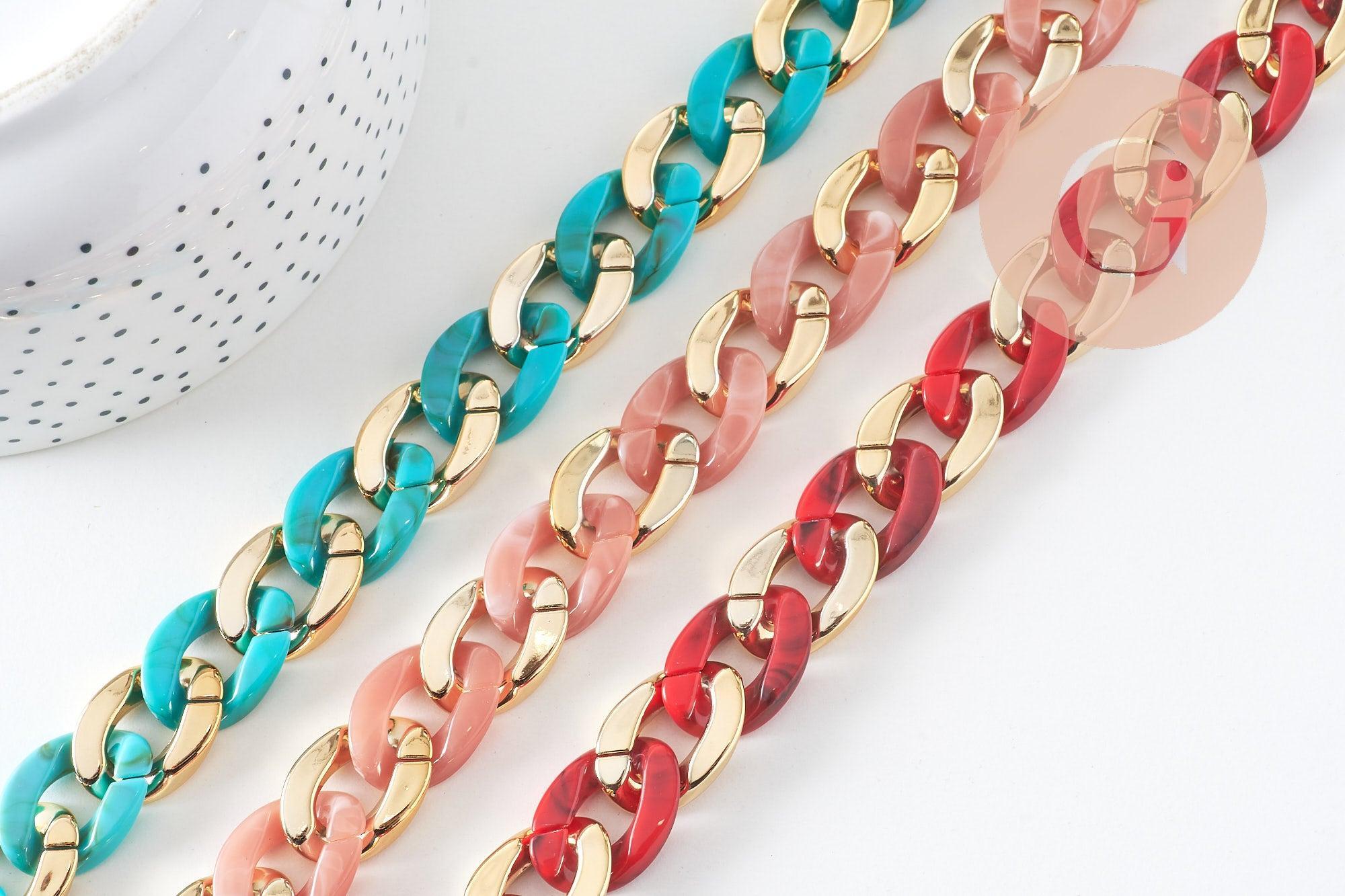 Cadena grande de plástico acrílico chapado en oro, 22x16 mm, cuenta de acetato, cadena de plástico, 1 metro (G4965)