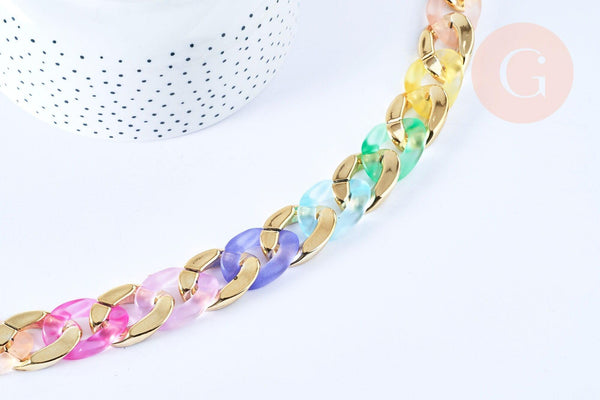 Cadena grande de plástico acrílico multicolor y dorado de 30x21 mm, para hacer una correa de muñeca o una correa para bolso, 1 metro (G4964)