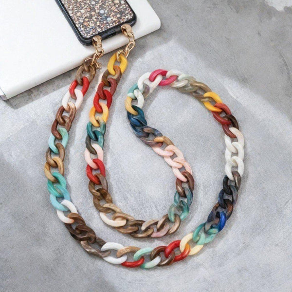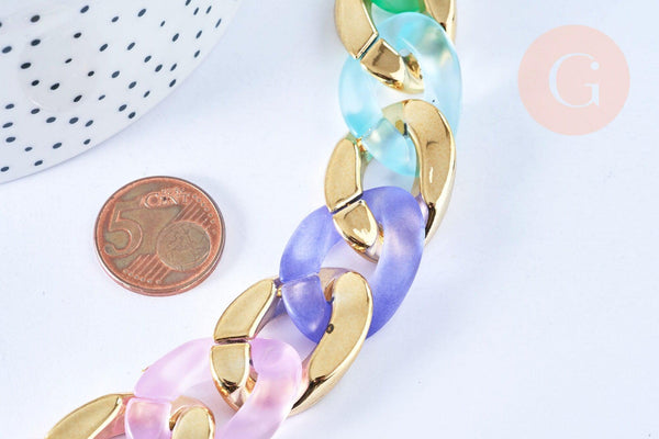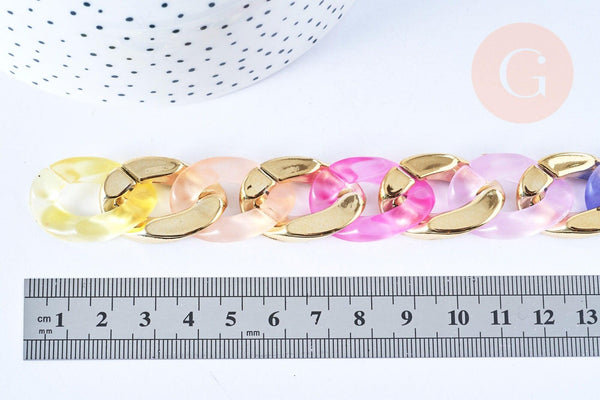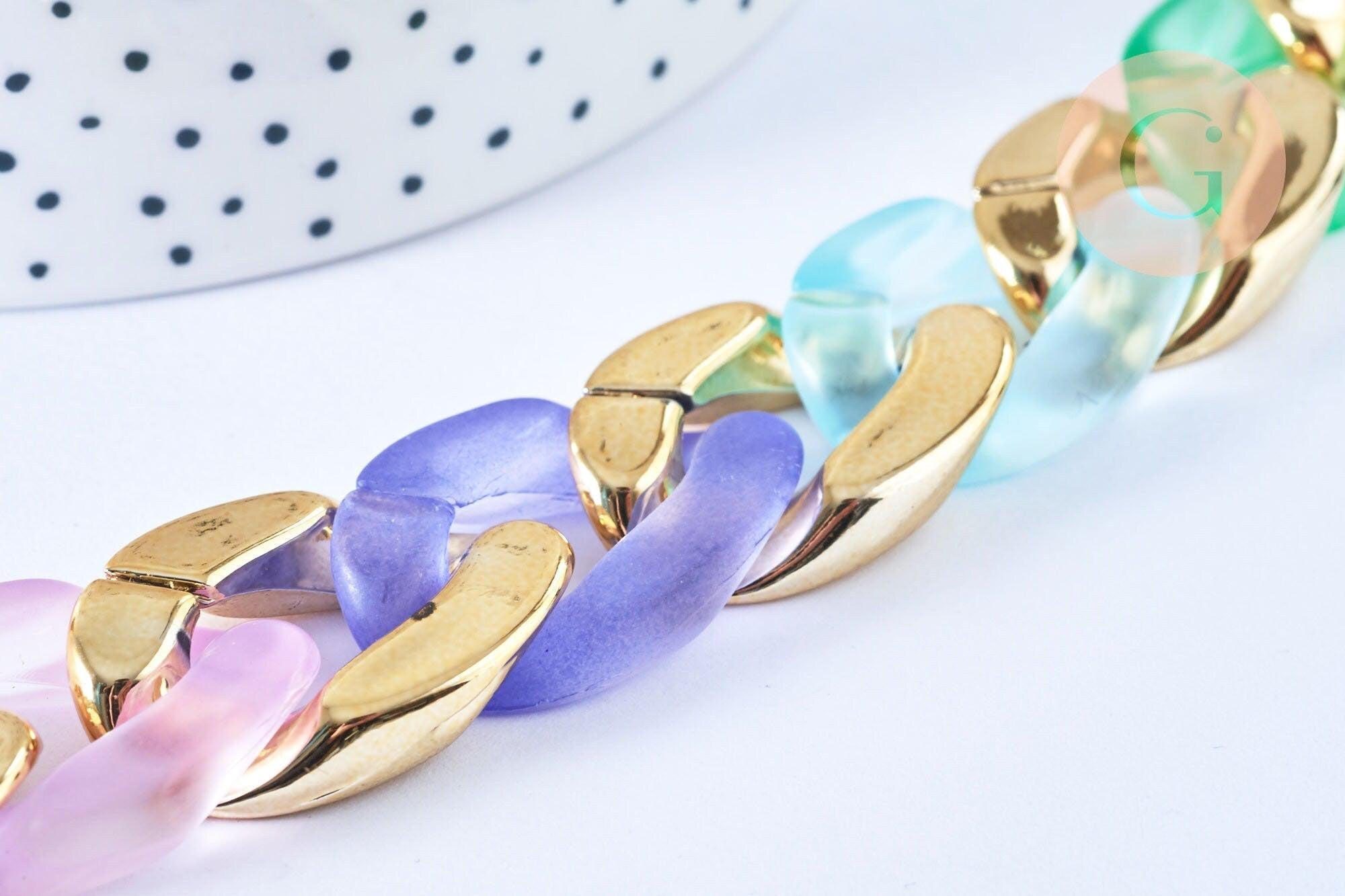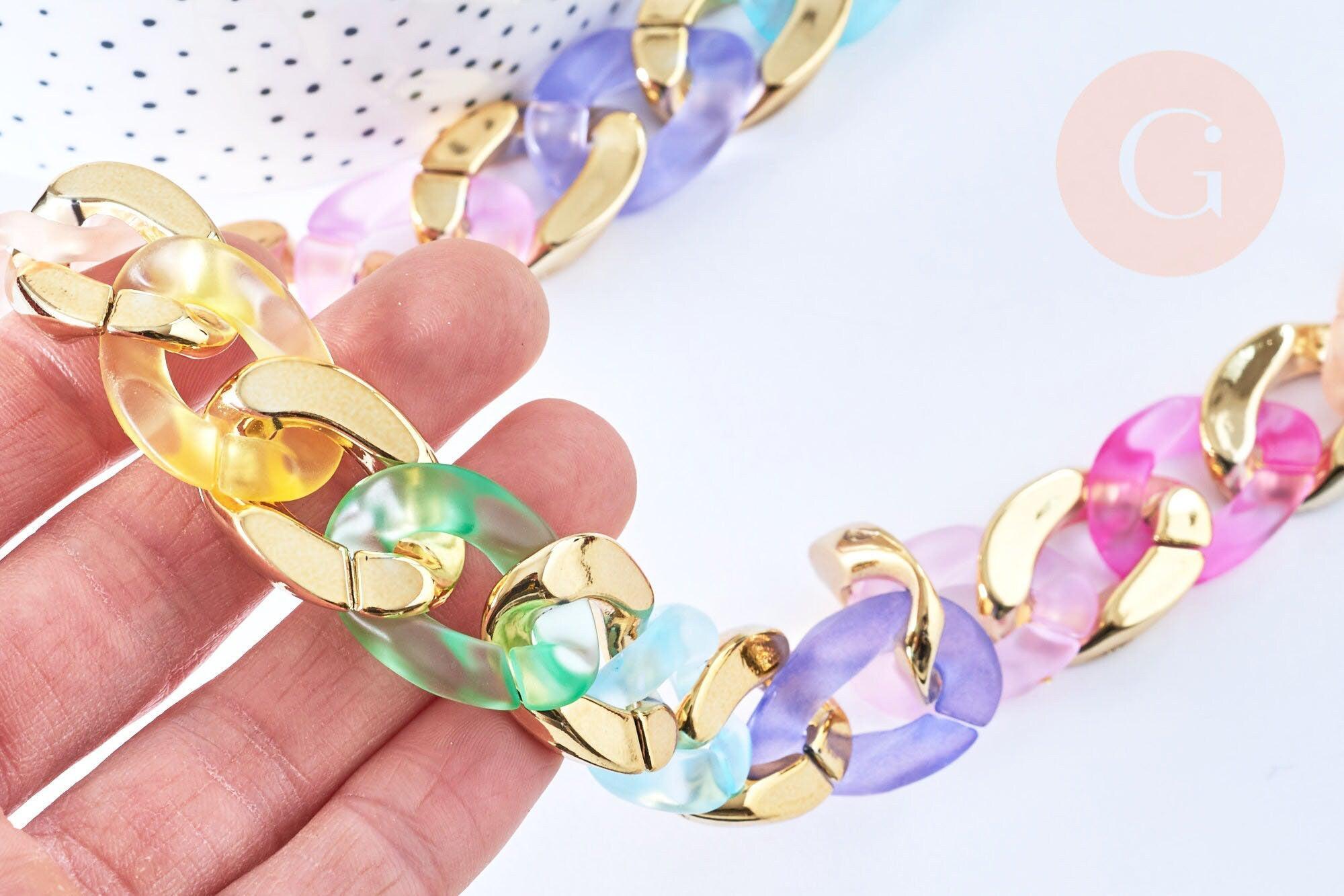 Una gran cadena de plástico acrílico multicolor y un eslabón de aluminio dorado para crear joyas modernas y originales.