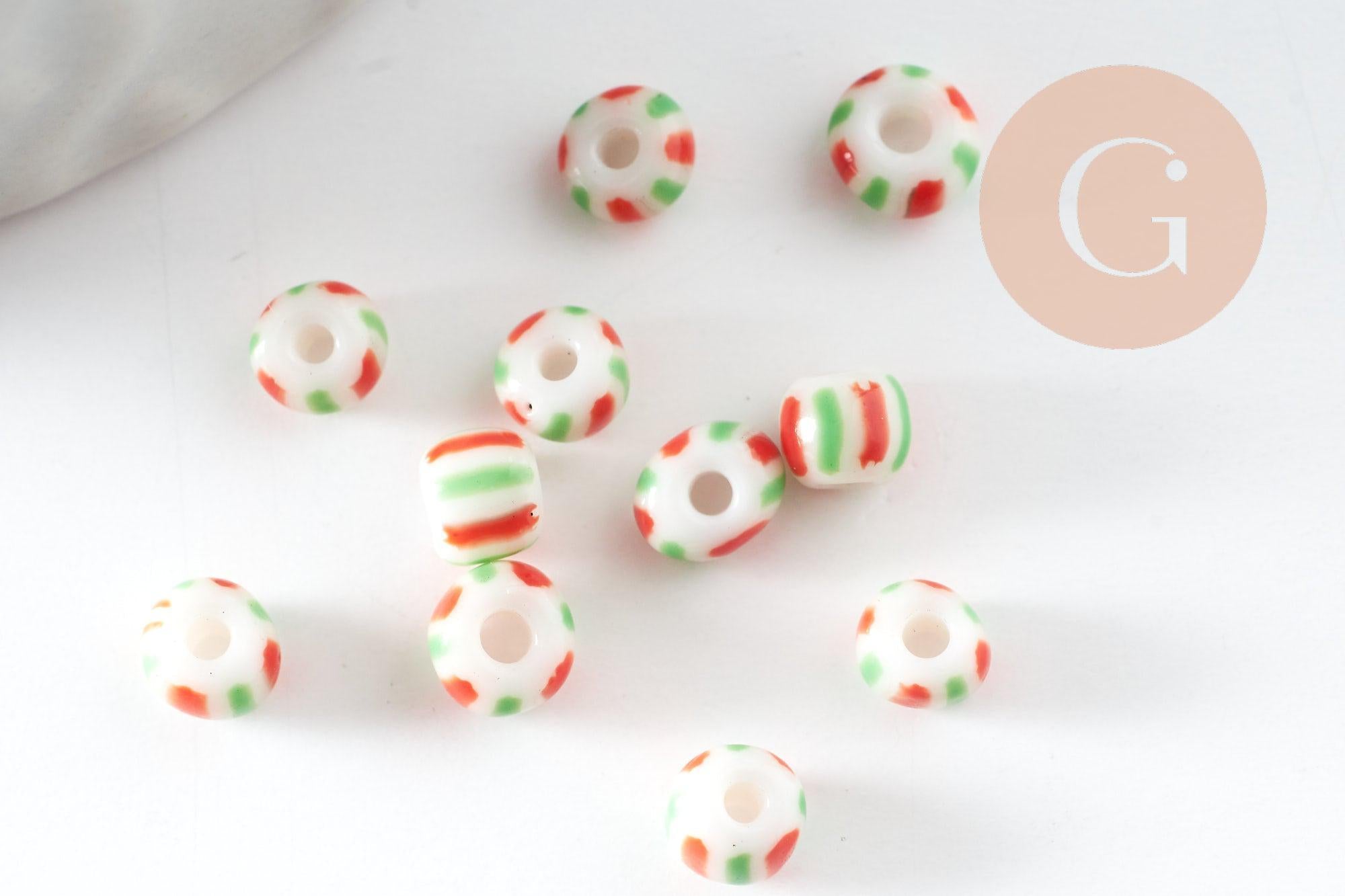 Descubra nuestras grandes cuentas de semillas rayadas en rojo y blanco de 3 a 4,5 mm, cuentas de semillas bicolor ideales para crear joyas. Este juego contiene 10 gramos de cuentas de semillas multicolores rayadas, perfectas para agregar un toque de color y textura a sus diseños.