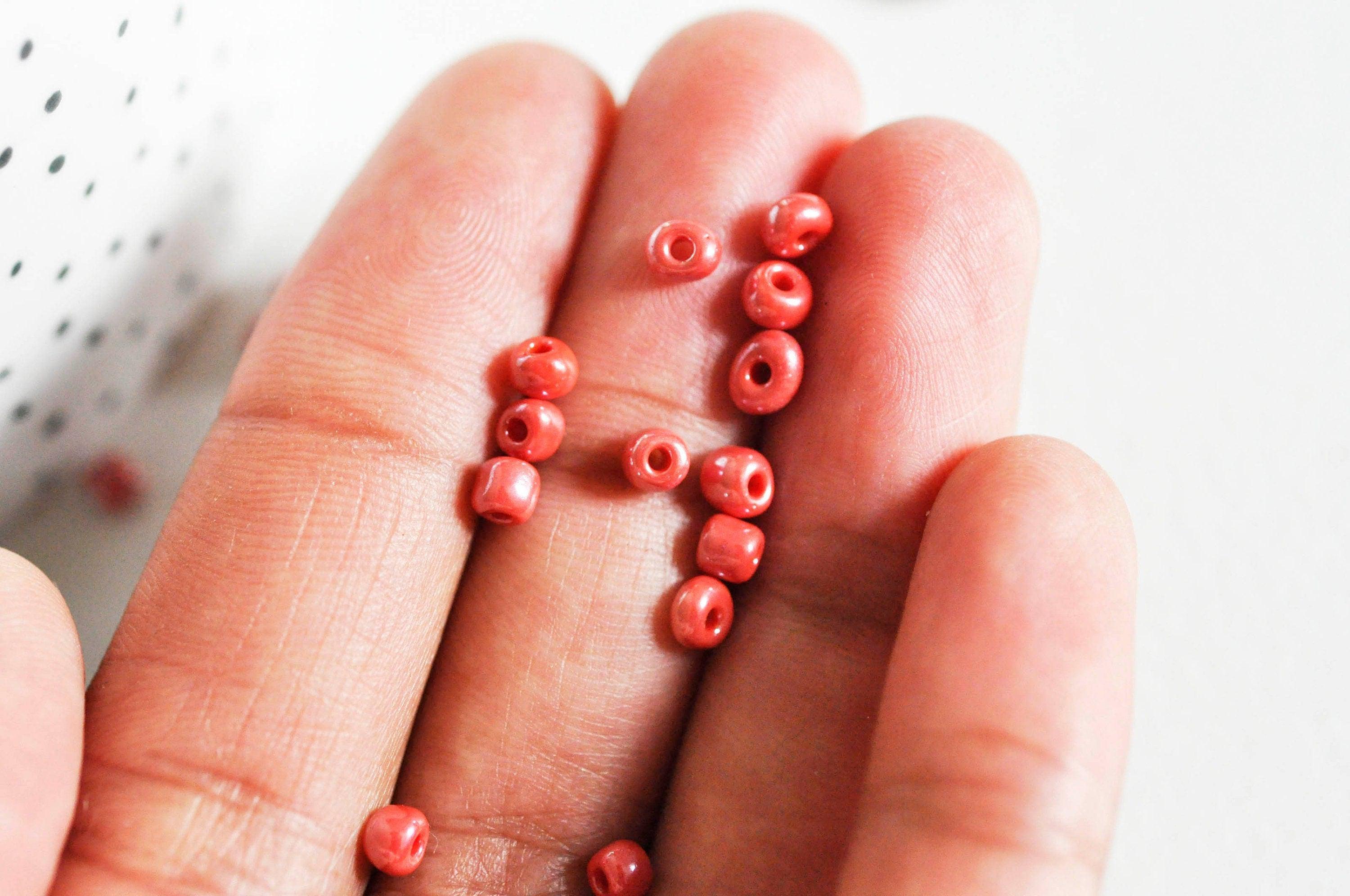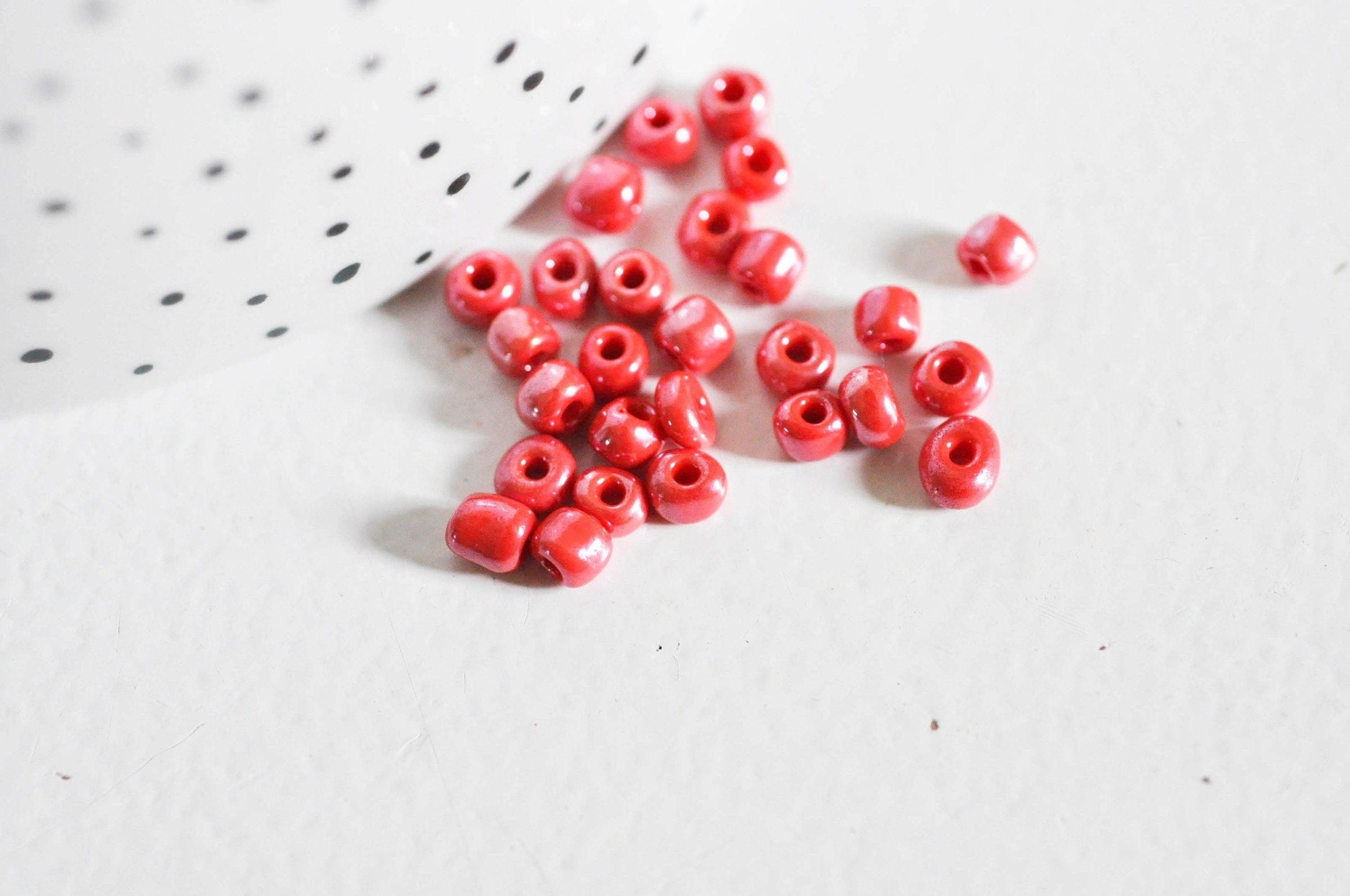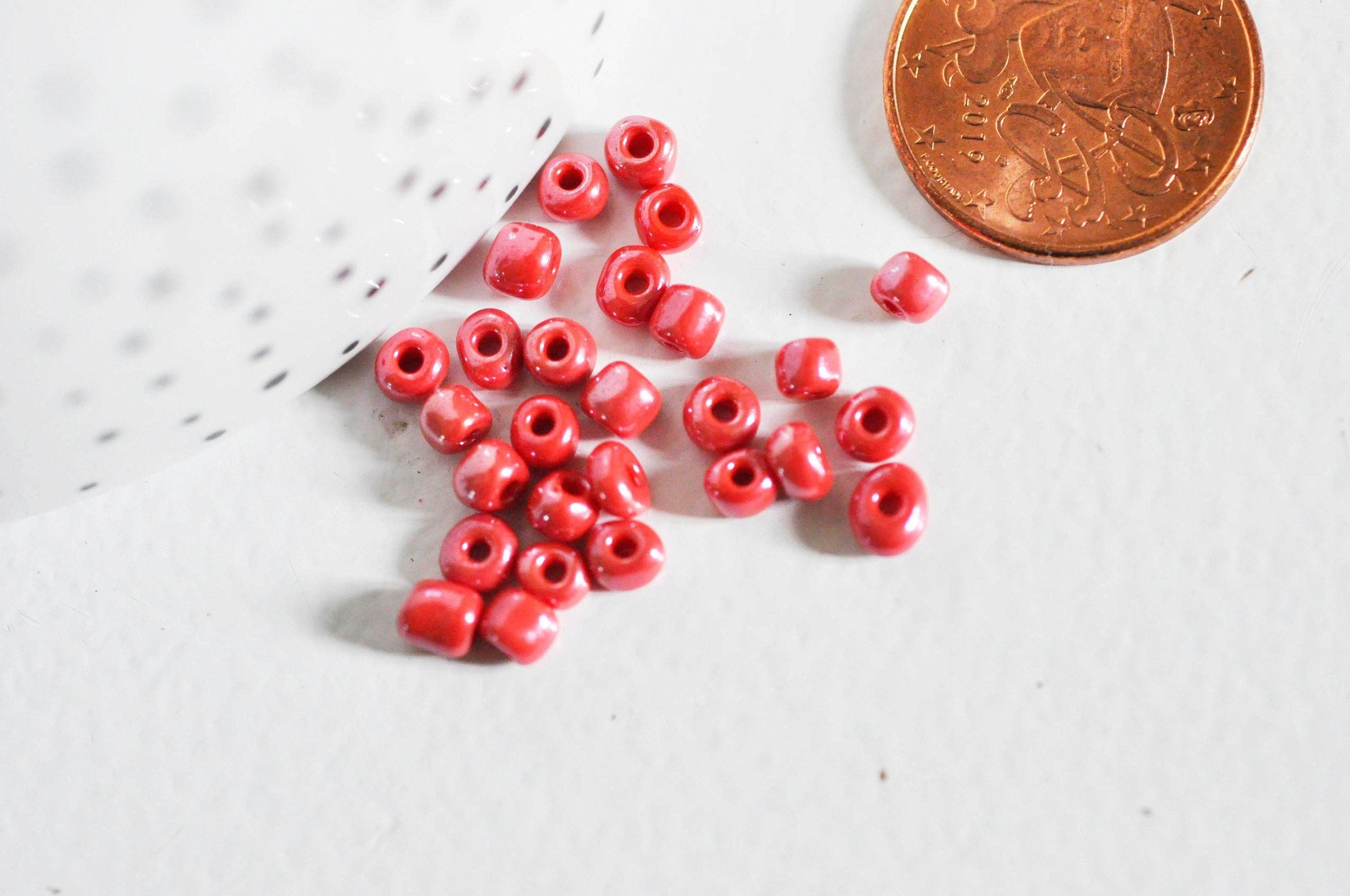 Grandes cuentas de semillas rojas nacaradas, cuentas de semillas rojas opacas, diámetro 4 mm x 10 gr (G3733)