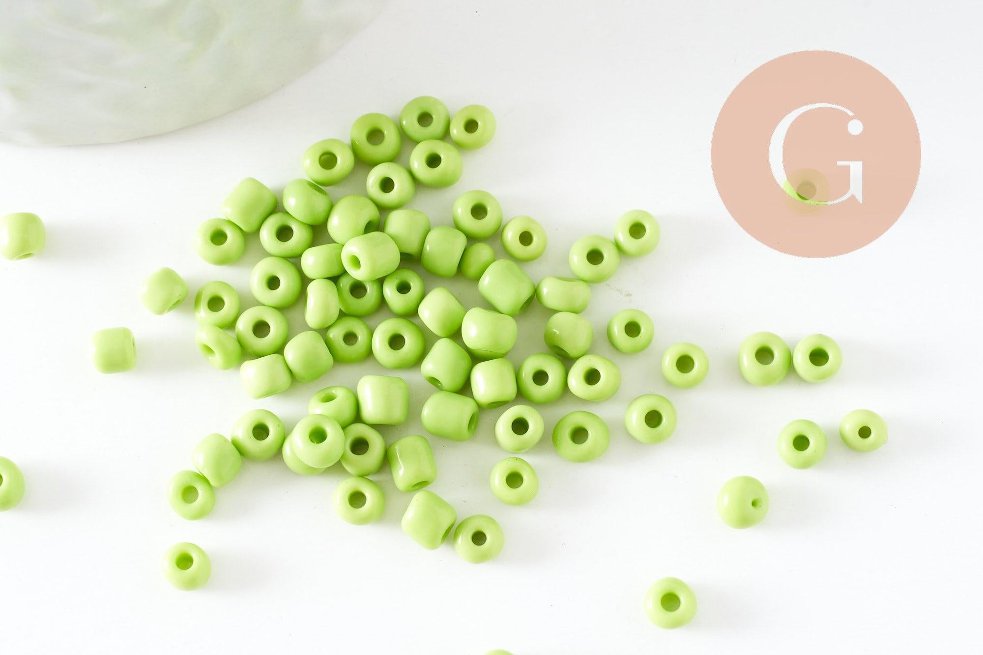 Grosses perles rocaille vert clair 4mm, x10 Gr (G1593)