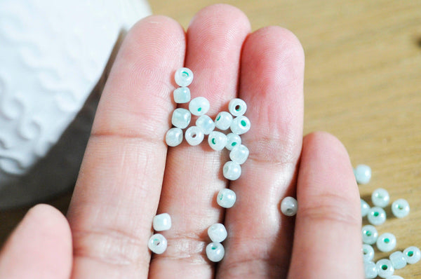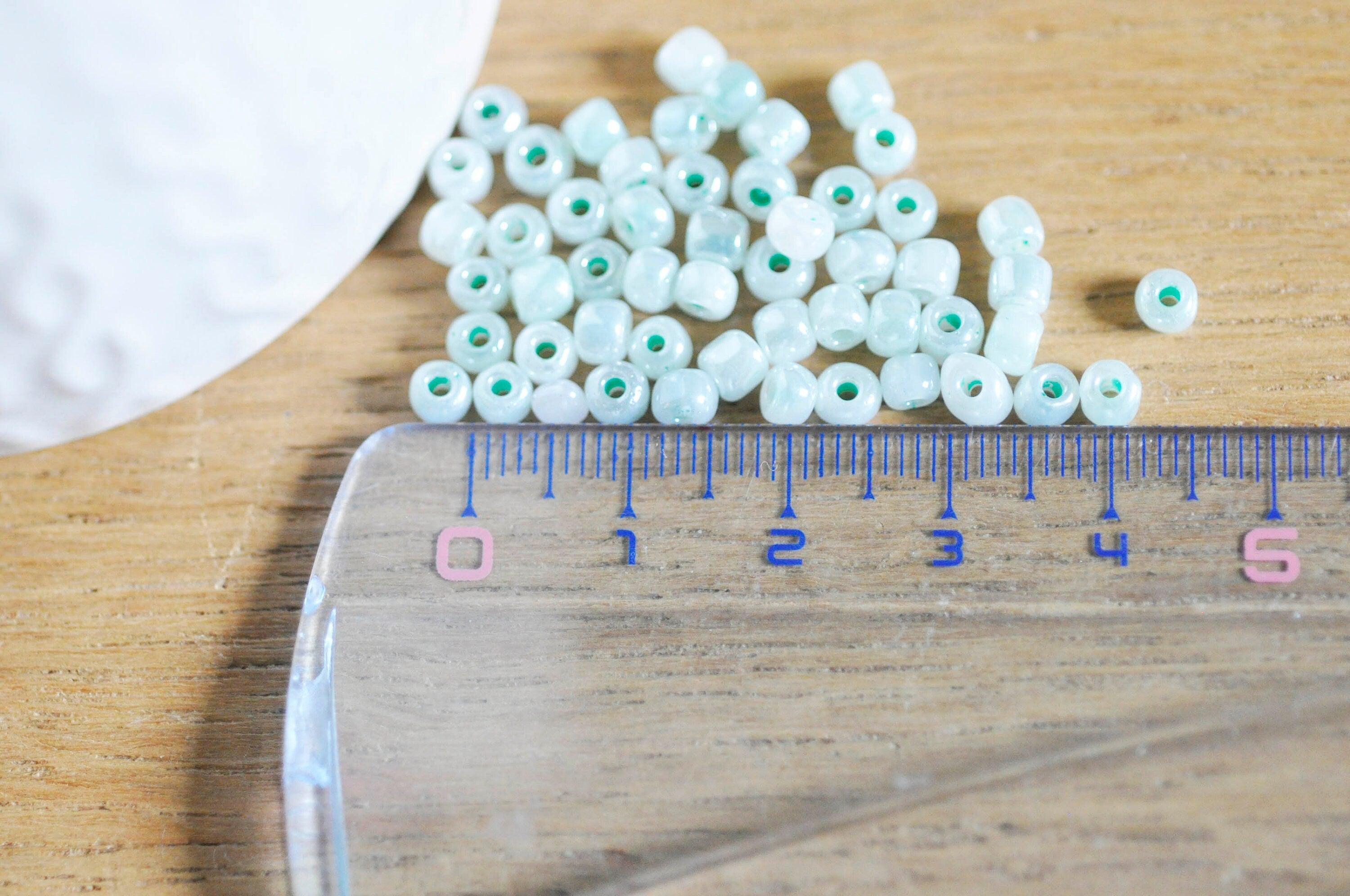 Grandes cuentas de semillas de color verde perlado, suministros de joyería, cuentas de semillas verdes, verde opaco, lote de 10 g, 4 mm de diámetro