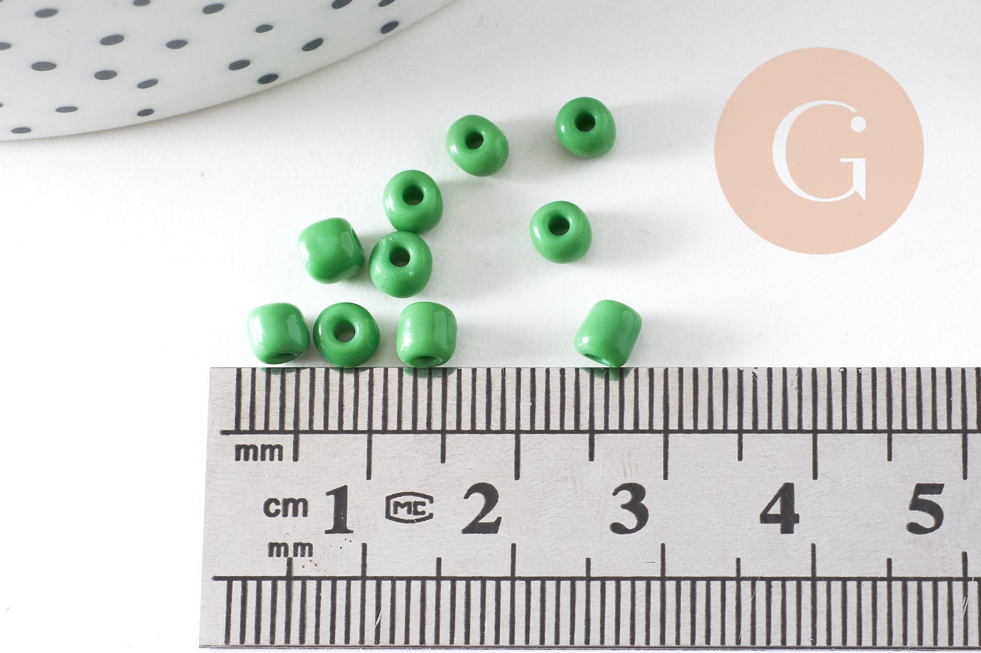 Estas grandes cuentas de vidrio verde pálido opaco están teñidas en masa para lograr un color uniforme y duradero. ¡Imprescindibles para creaciones frescas, naturales y a la moda!